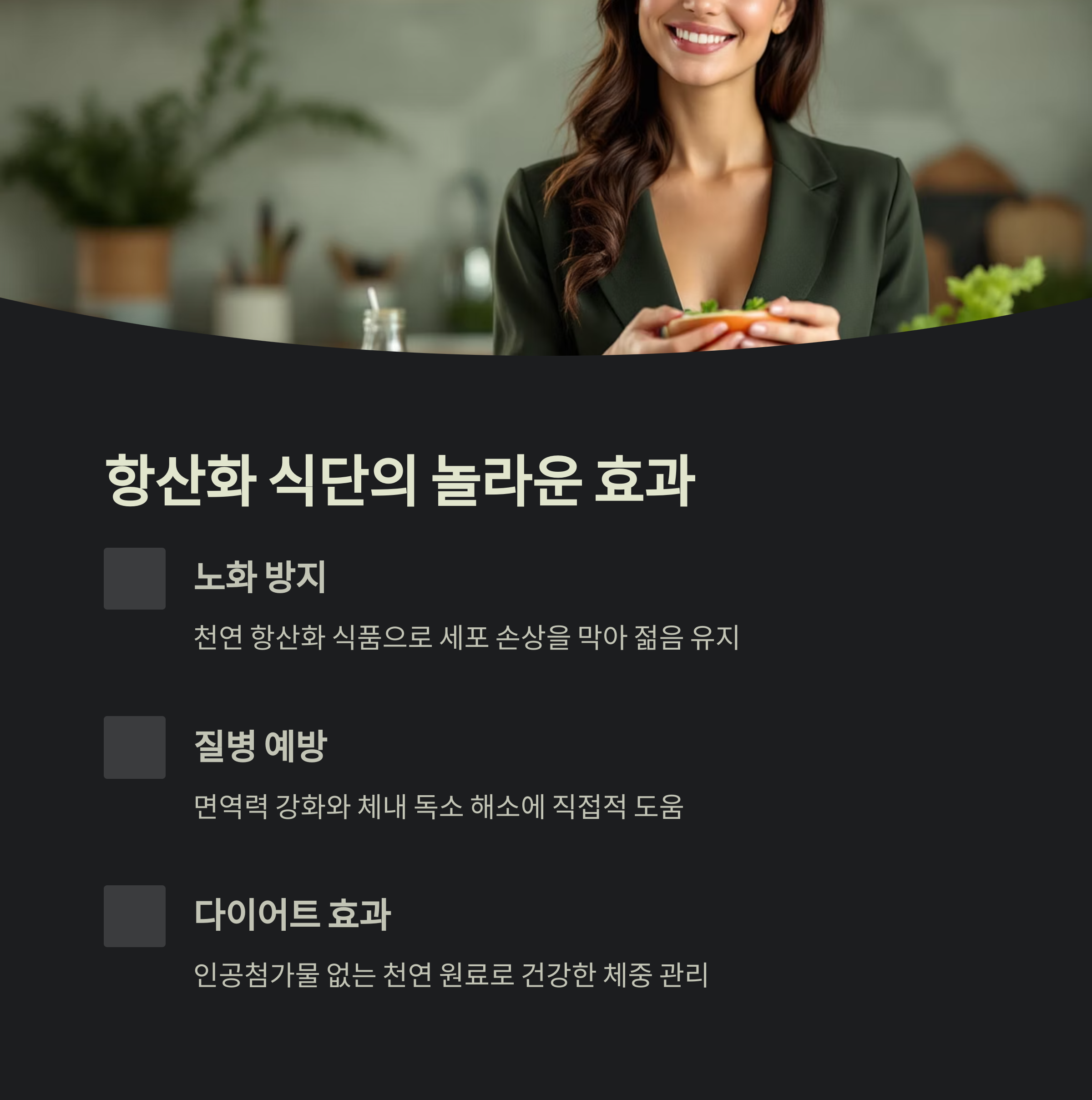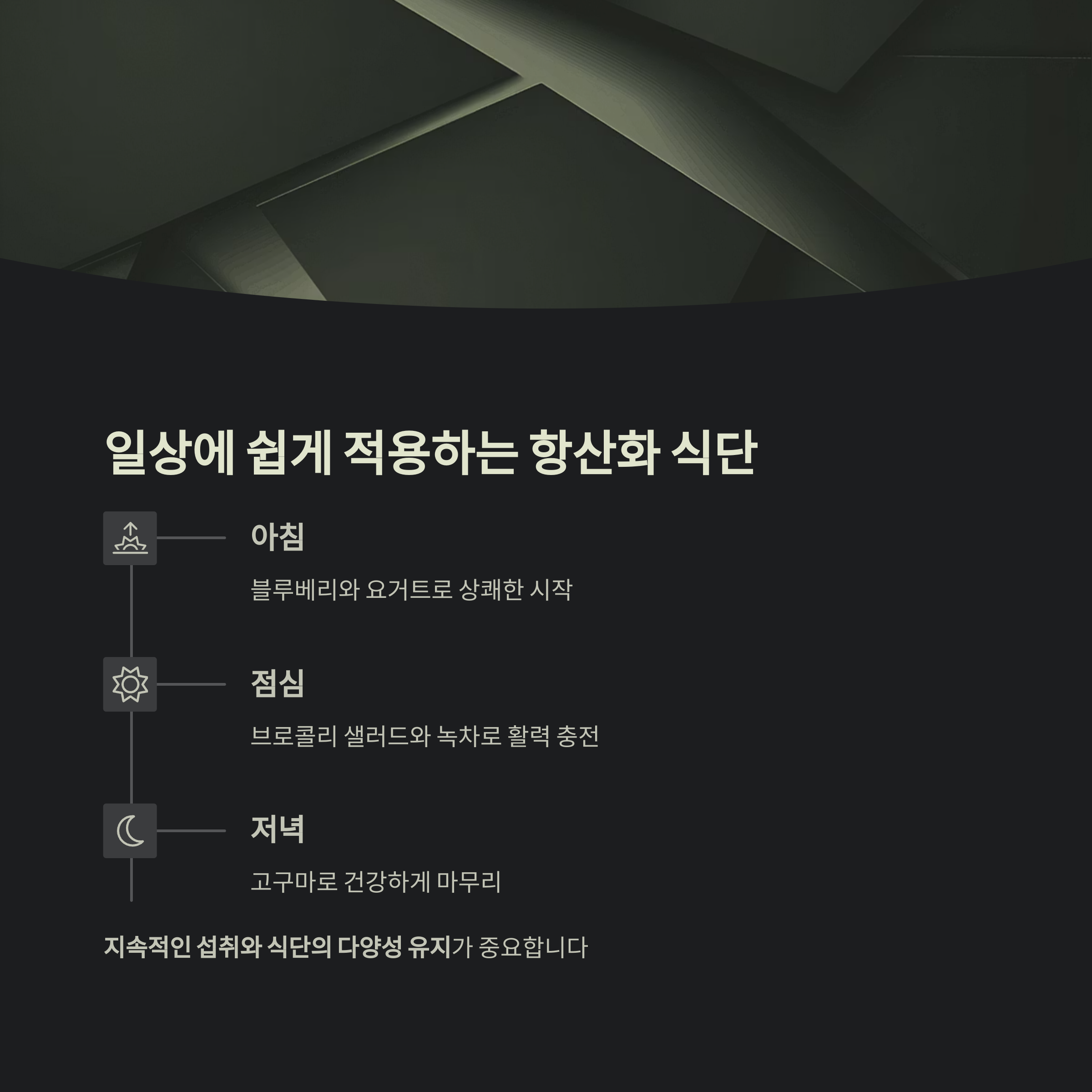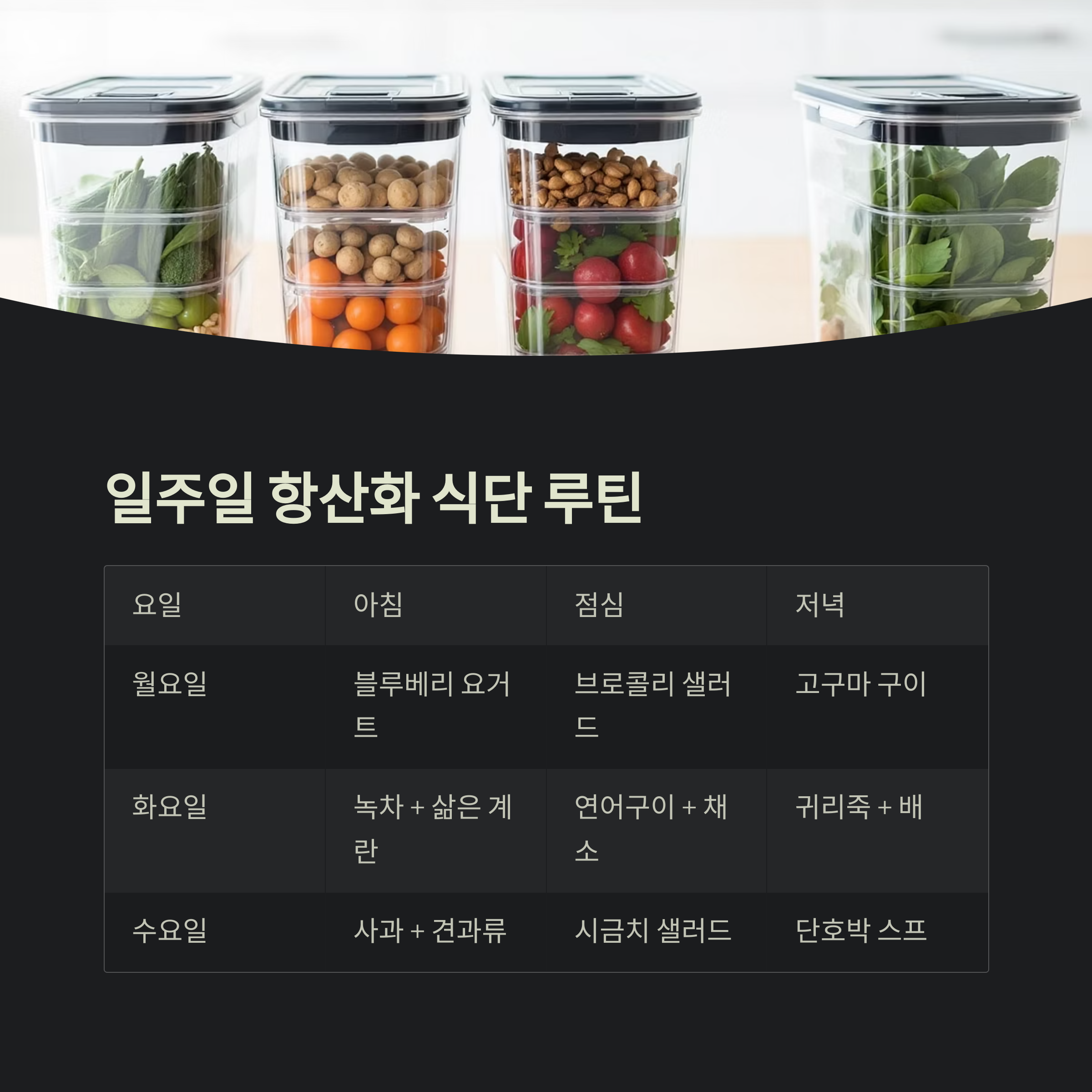 이런 식단 구성은 간편하면서도 효과적인 항산화 전략입니다