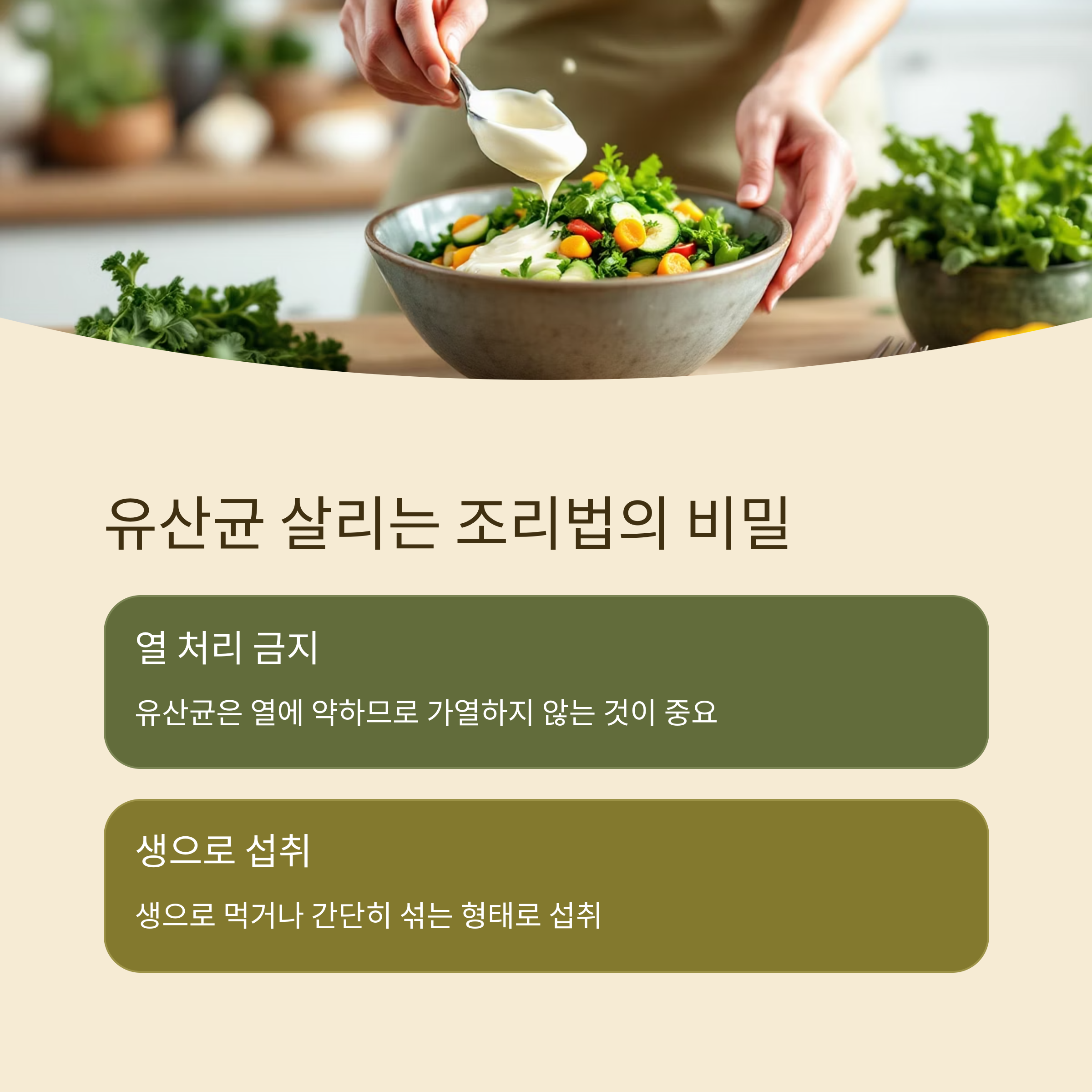 조리 과정을 통해 유산균의 흡수를 극대화하는 방법이 소개되었습니다.