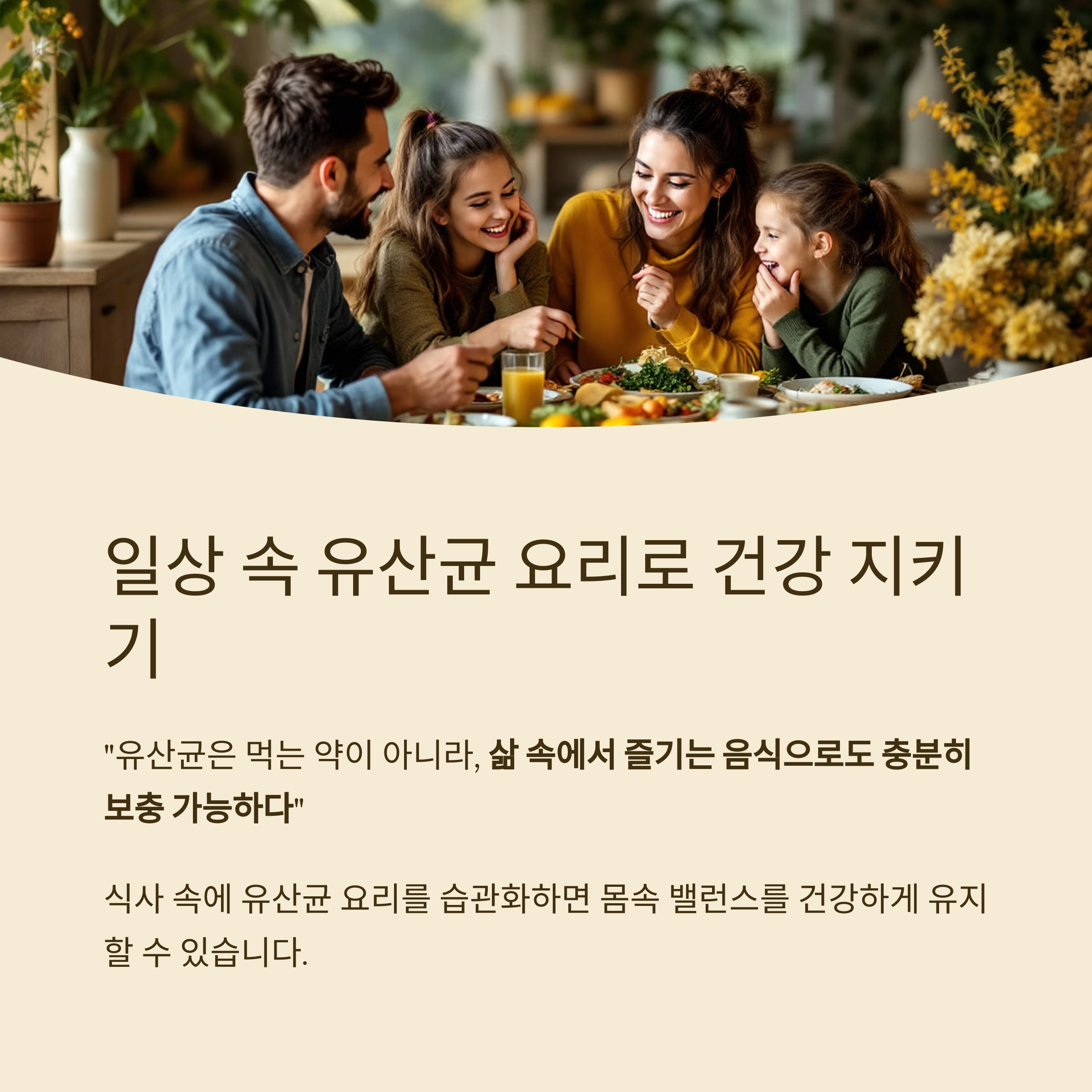 "유산균은 먹는 약이 아니라, 삶 속에서 즐기는 음식으로도 충분히 보충 가능하다"