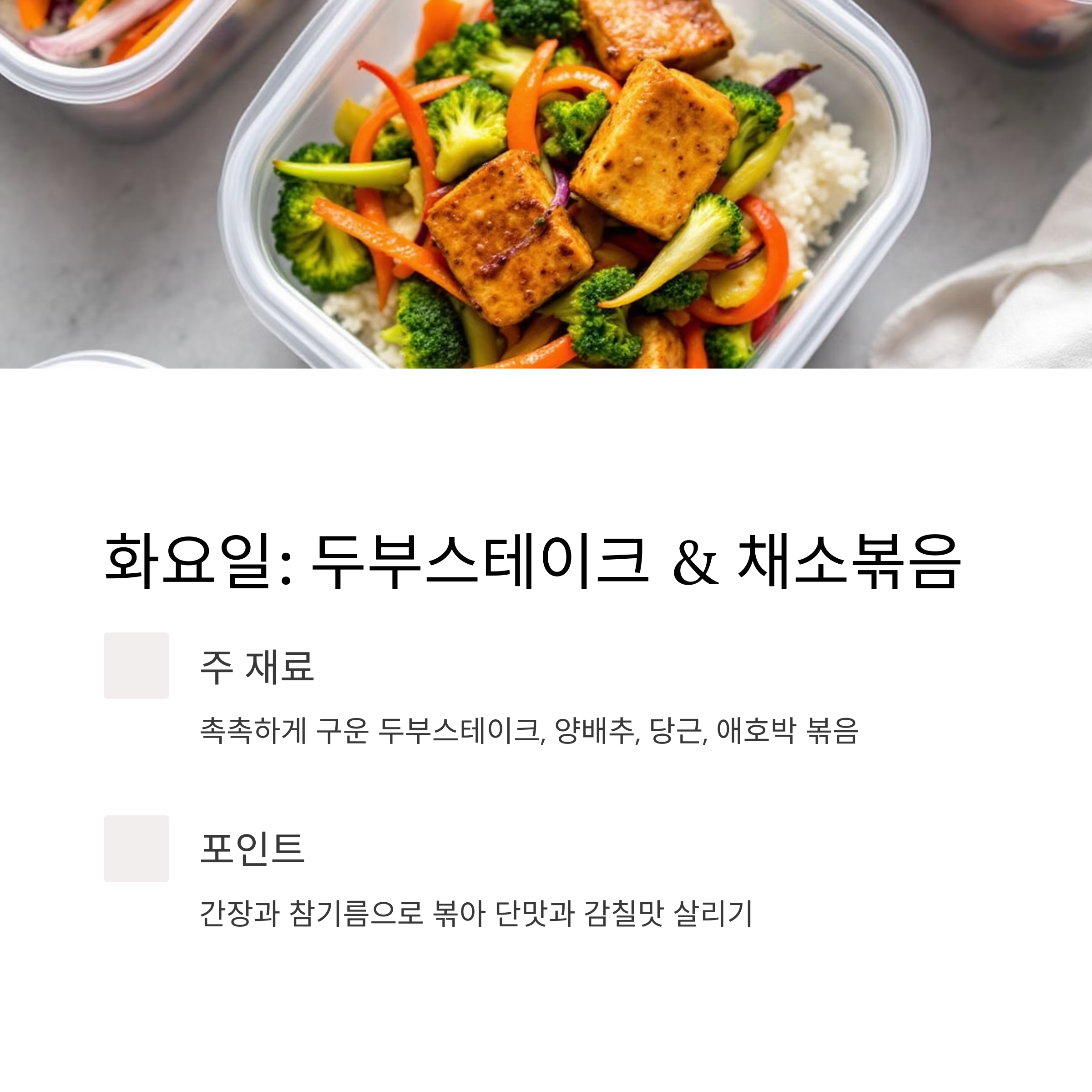 화요일: 두부스테이크 & 채소볶음 도시락