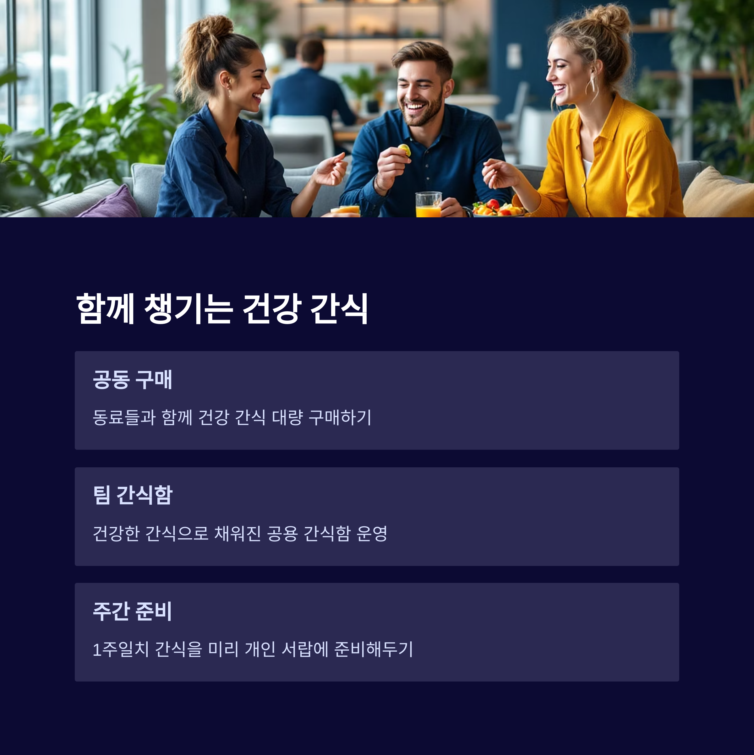 공동 구매나 팀 간식함 제도를 활용해보세요. 몇몇 회사에서는