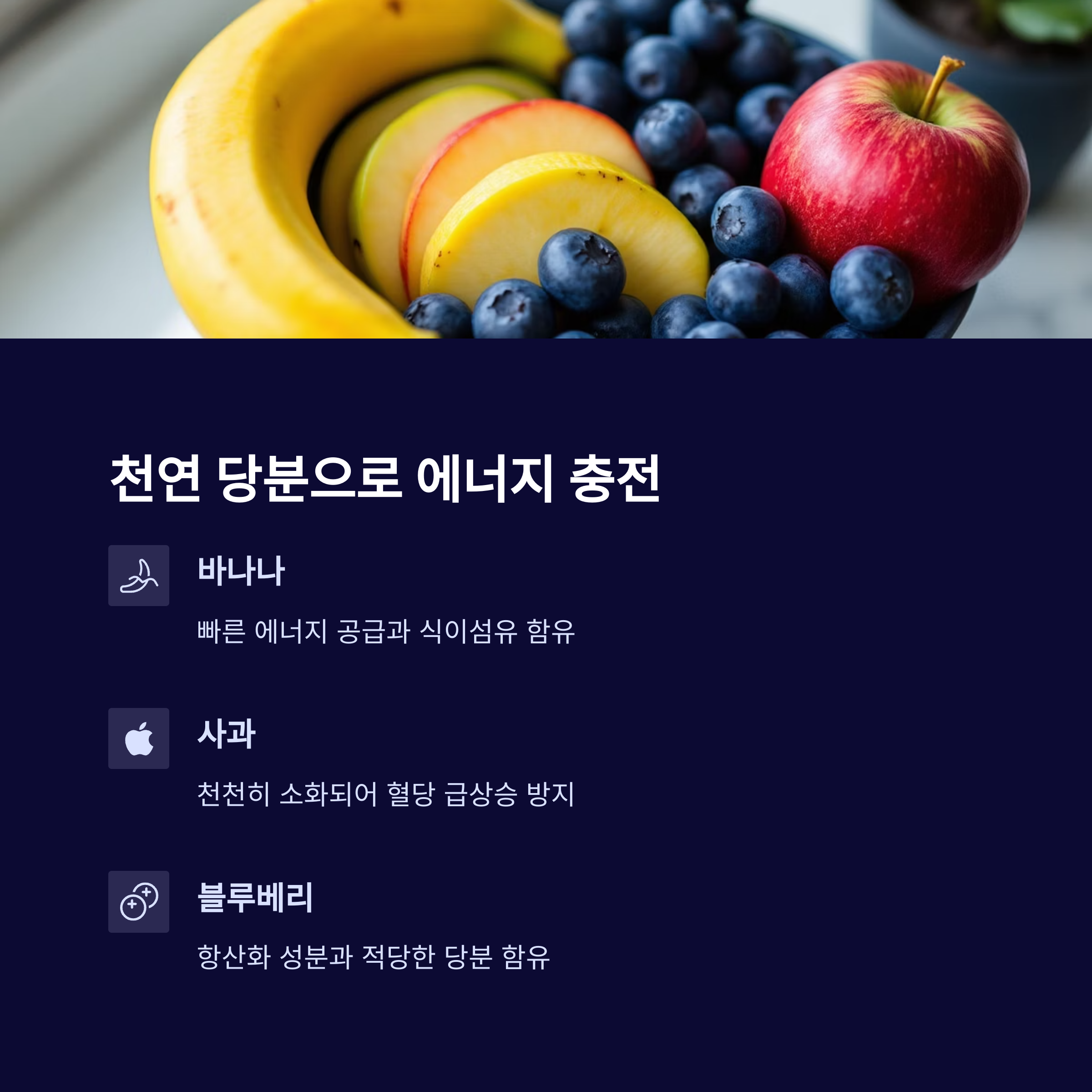 바나나, 사과, 블루베리, 대추야자 등은 적당한 당분과 함께 식이섬유도