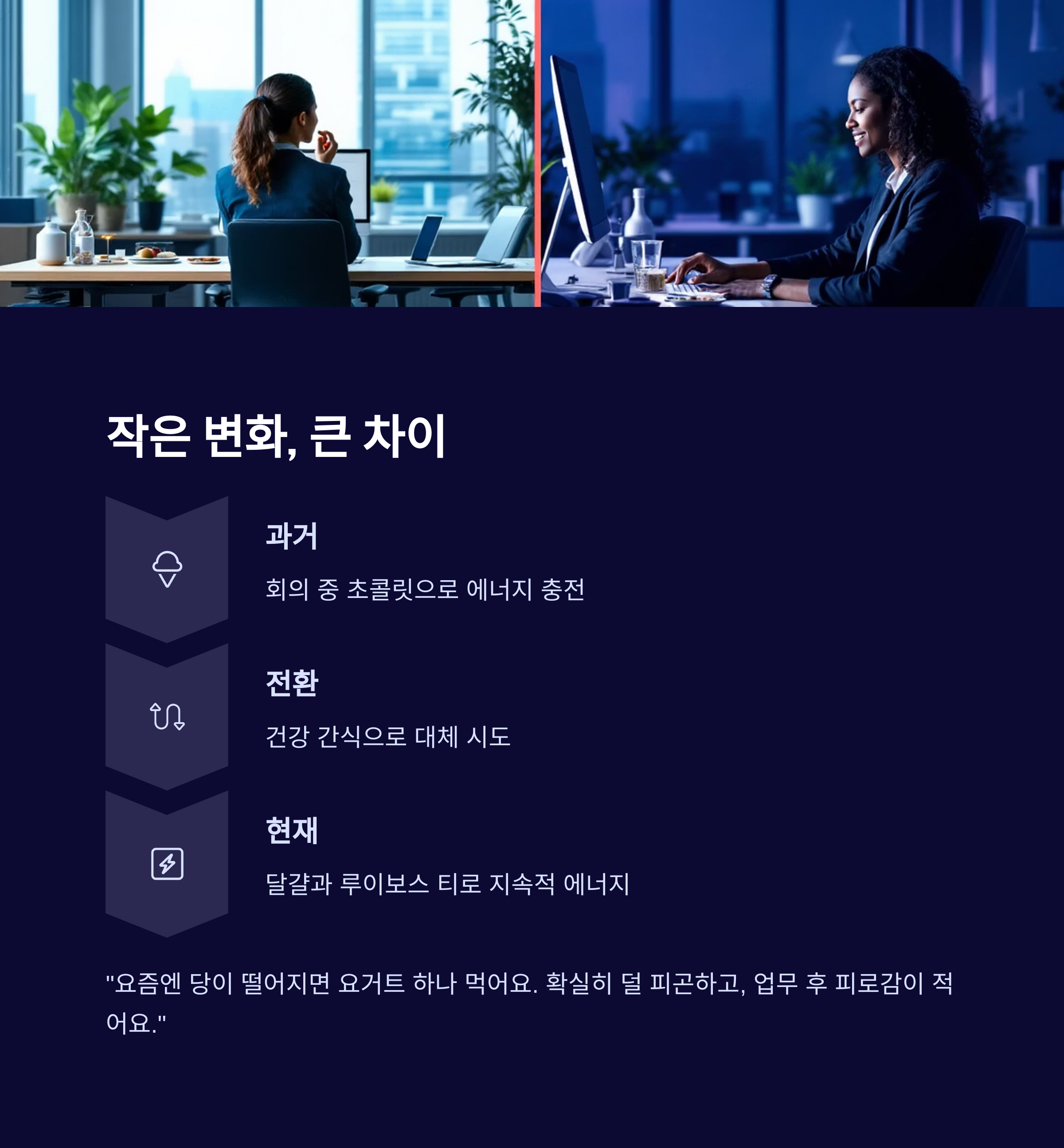 음식으로 교체하는 것만으로도 큰 변화가 생깁니다. 이번 글에서는 실제 직장인들이