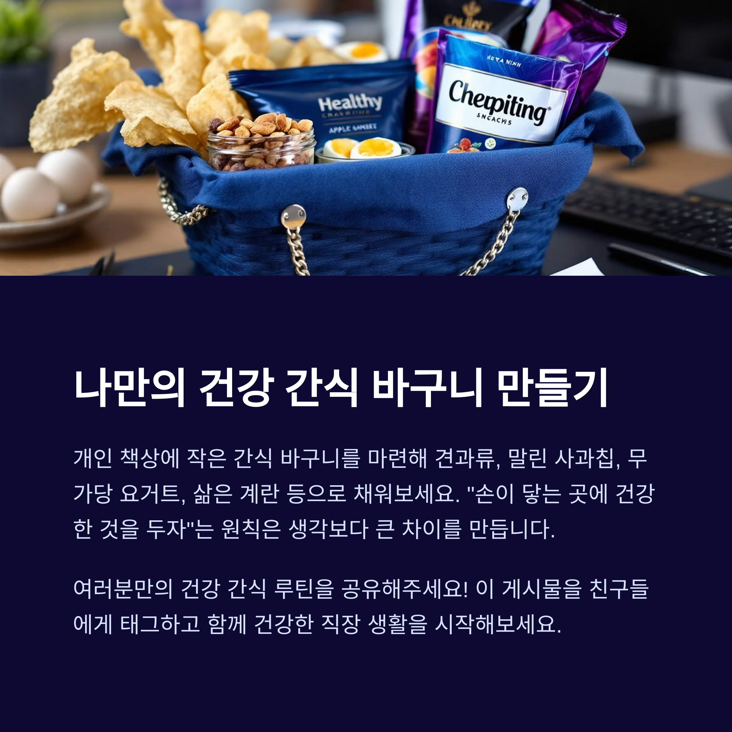 직장에서 간식을 즐길 때 가장 중요한 기준은 과하지 않고, 영양을 고려하는 것입니다.