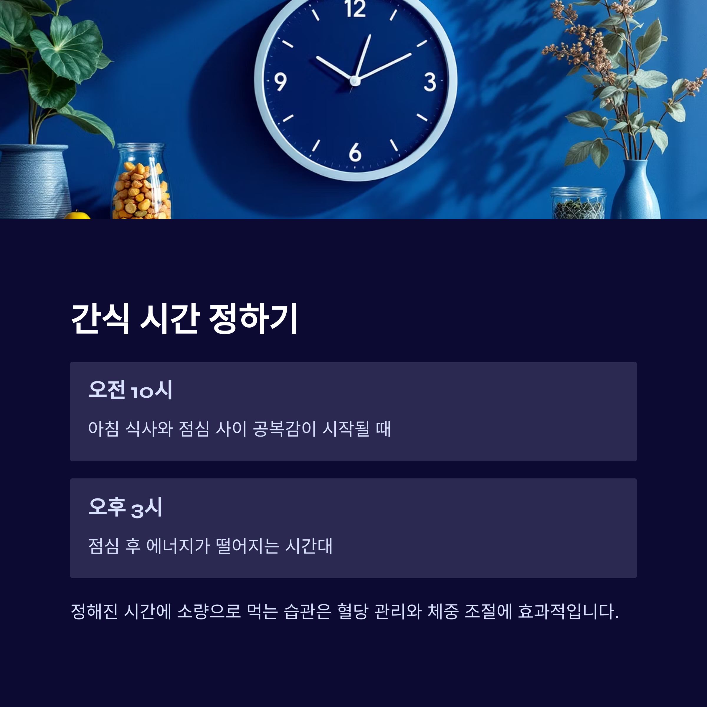 정해진 시간에 소량으로 먹는 습관은 체중 관리에도 효과적입니다.