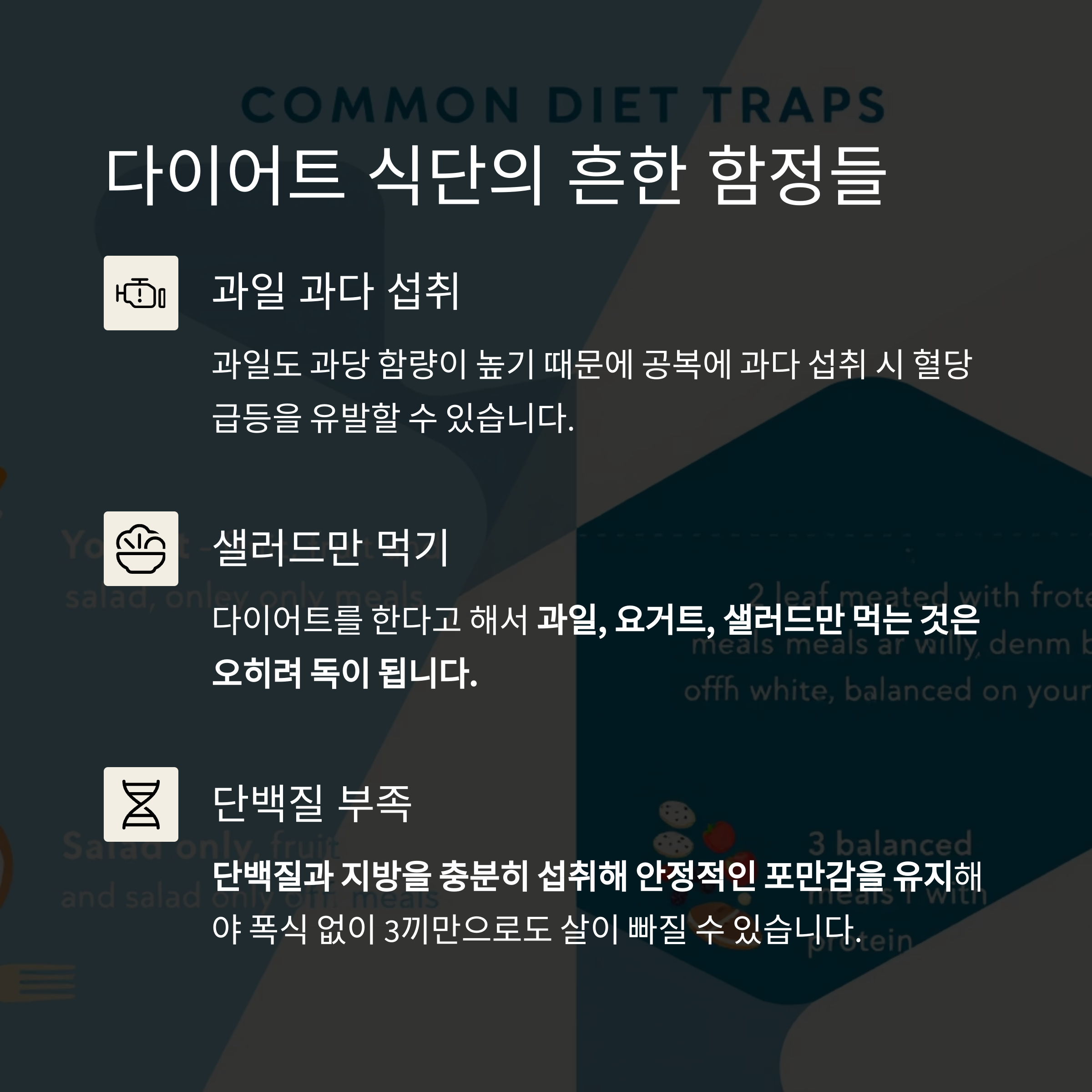 하지만 오히려 대사 저하와 폭식을 유도해 요요 현상을 초래할 수 있습니다.