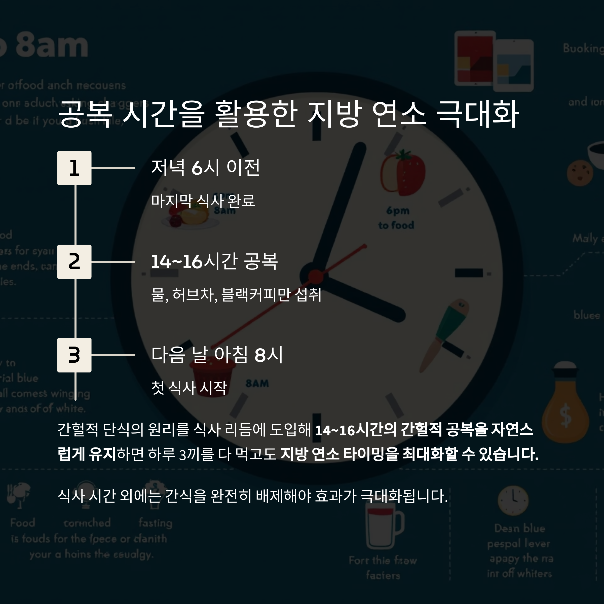 하루 3끼를 다 먹고도 지방 연소 타이밍을 최대화할 수 있습니다.