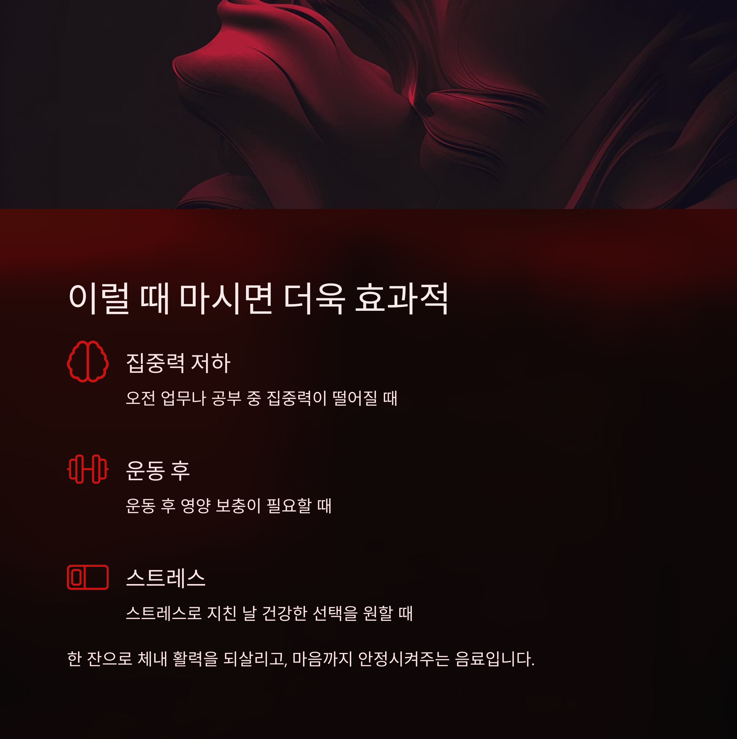 한 잔으로 체내 활력을 되살리고, 마음까지 안정시켜주는 음료입니다.