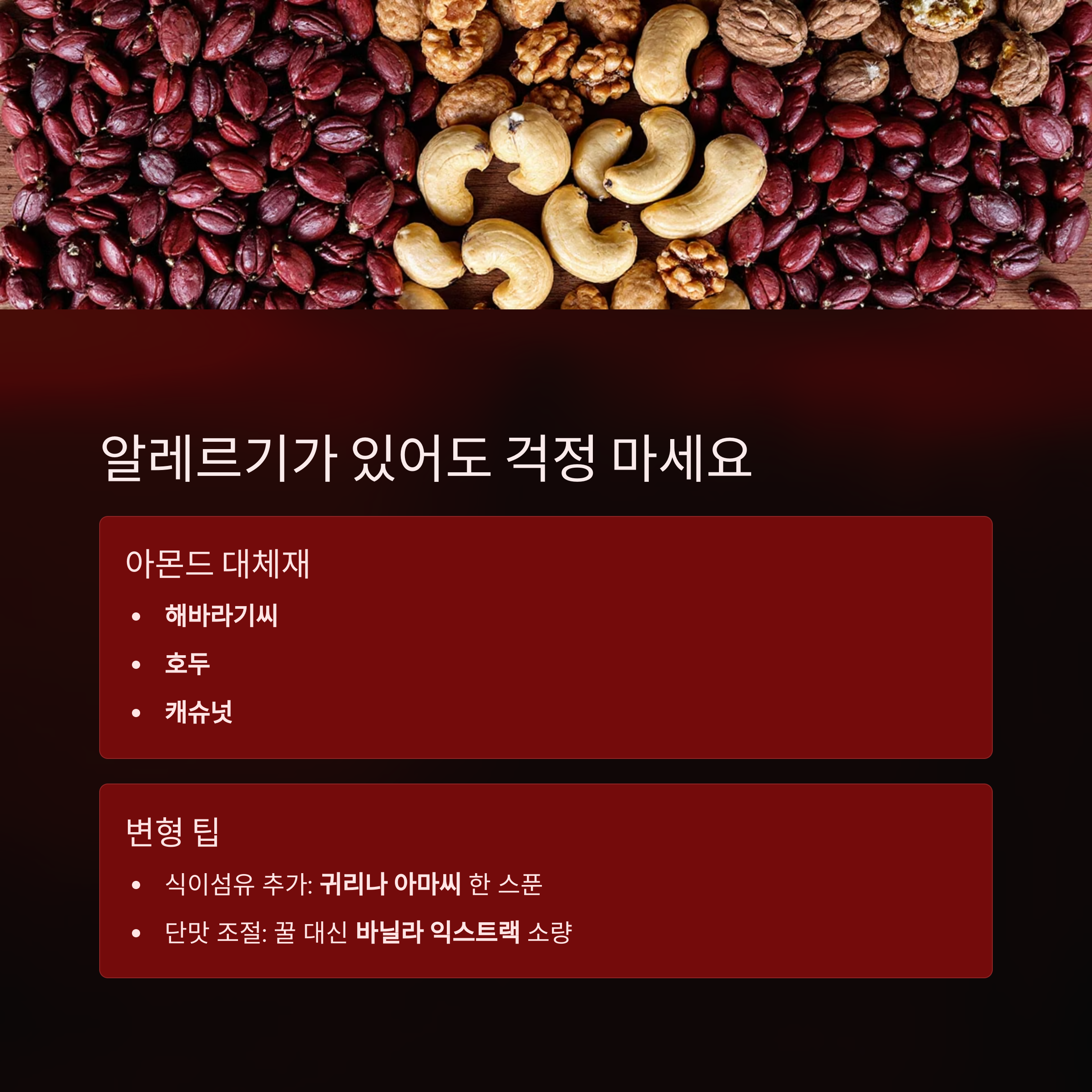 아몬드 알레르기 대체재 및 변형 팁