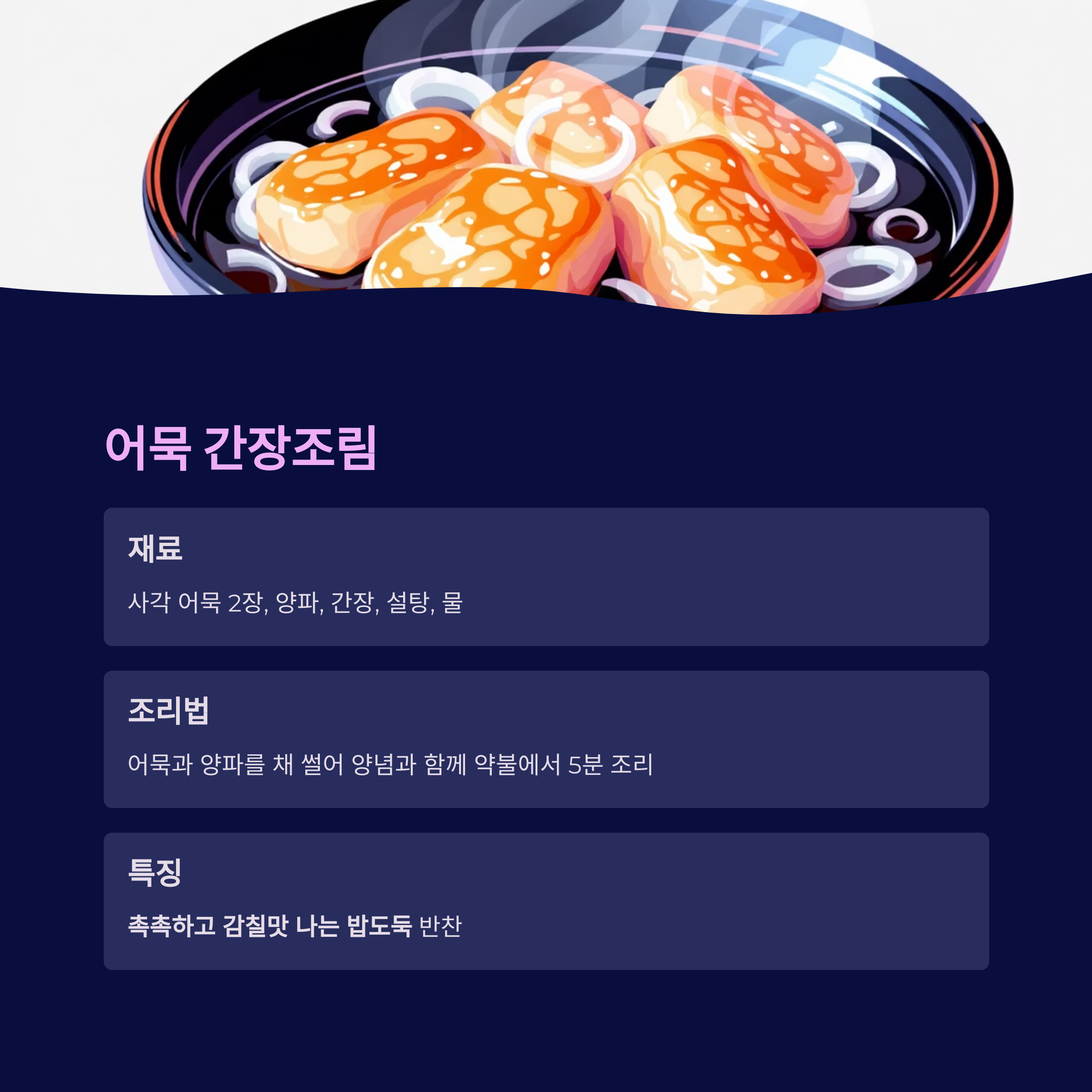 약불에서 5분만 조리해도 촉촉하고 감칠맛 나는 밥도둑 반찬이 됩니다.