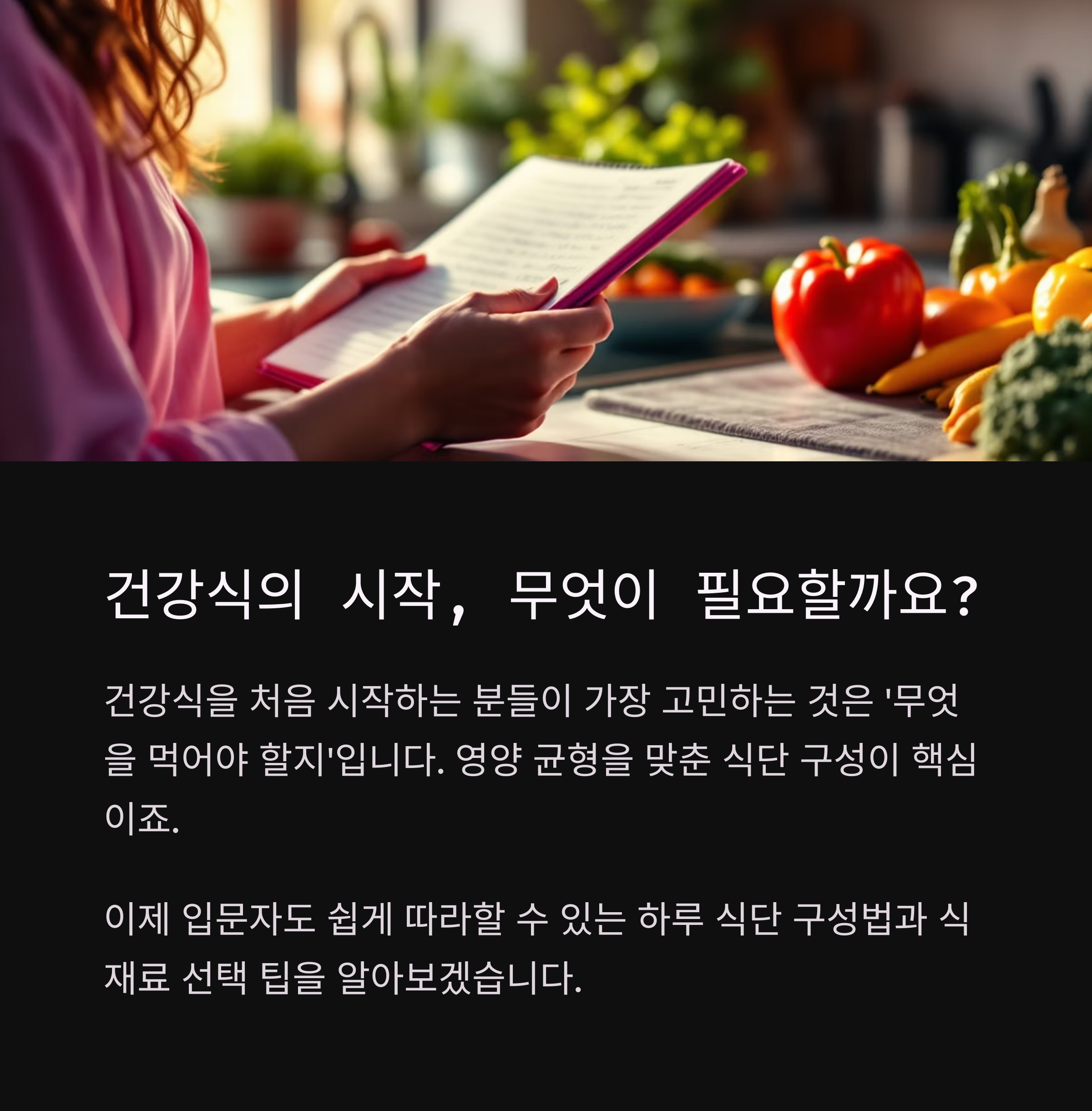 이 글에서는 입문자도 쉽게 따라 할 수 있는 하루 식단 구성법과 식재료 선택 팁을