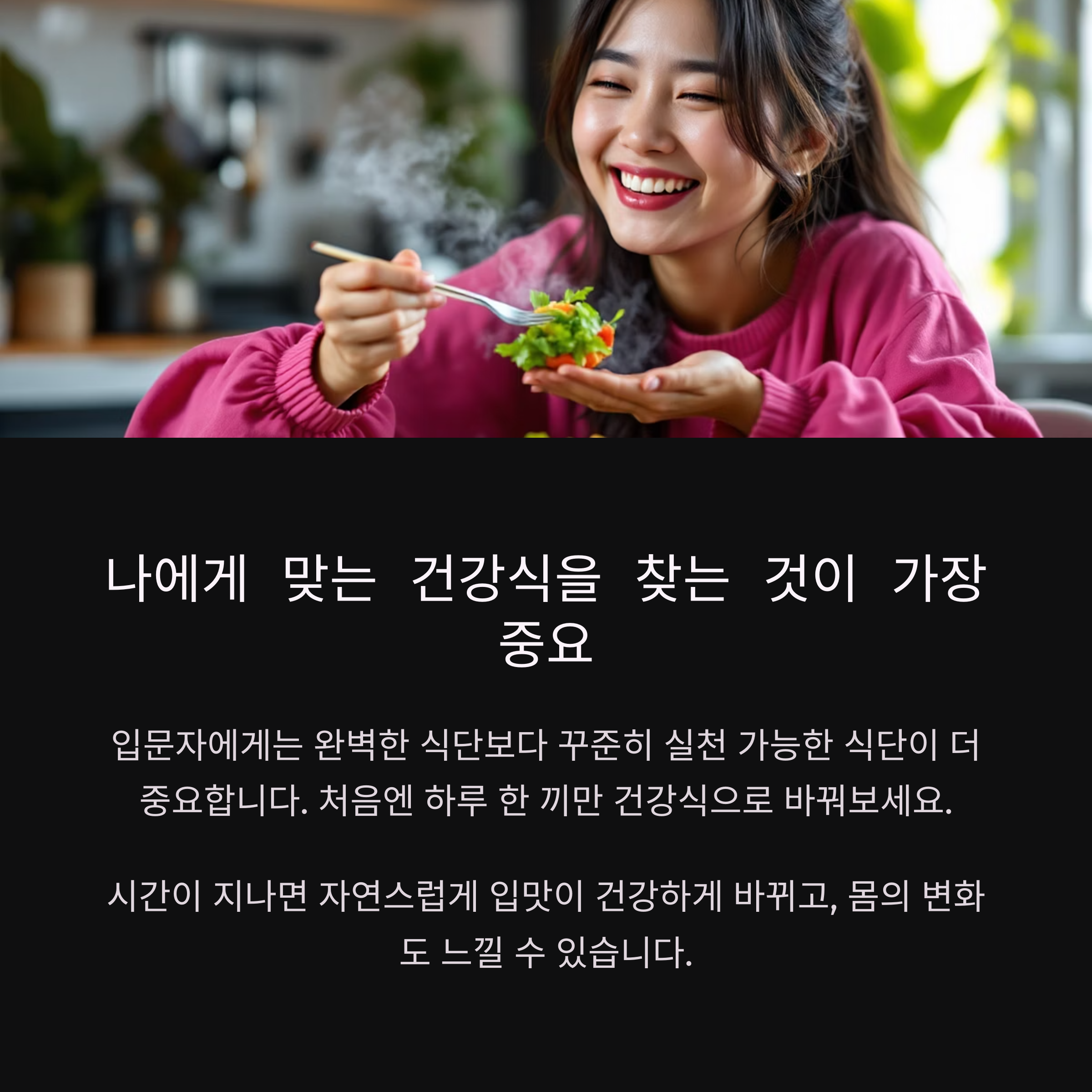 처음엔 하루 한 끼만 건강식으로 바꿔보는 것도 좋은 시작입니다.