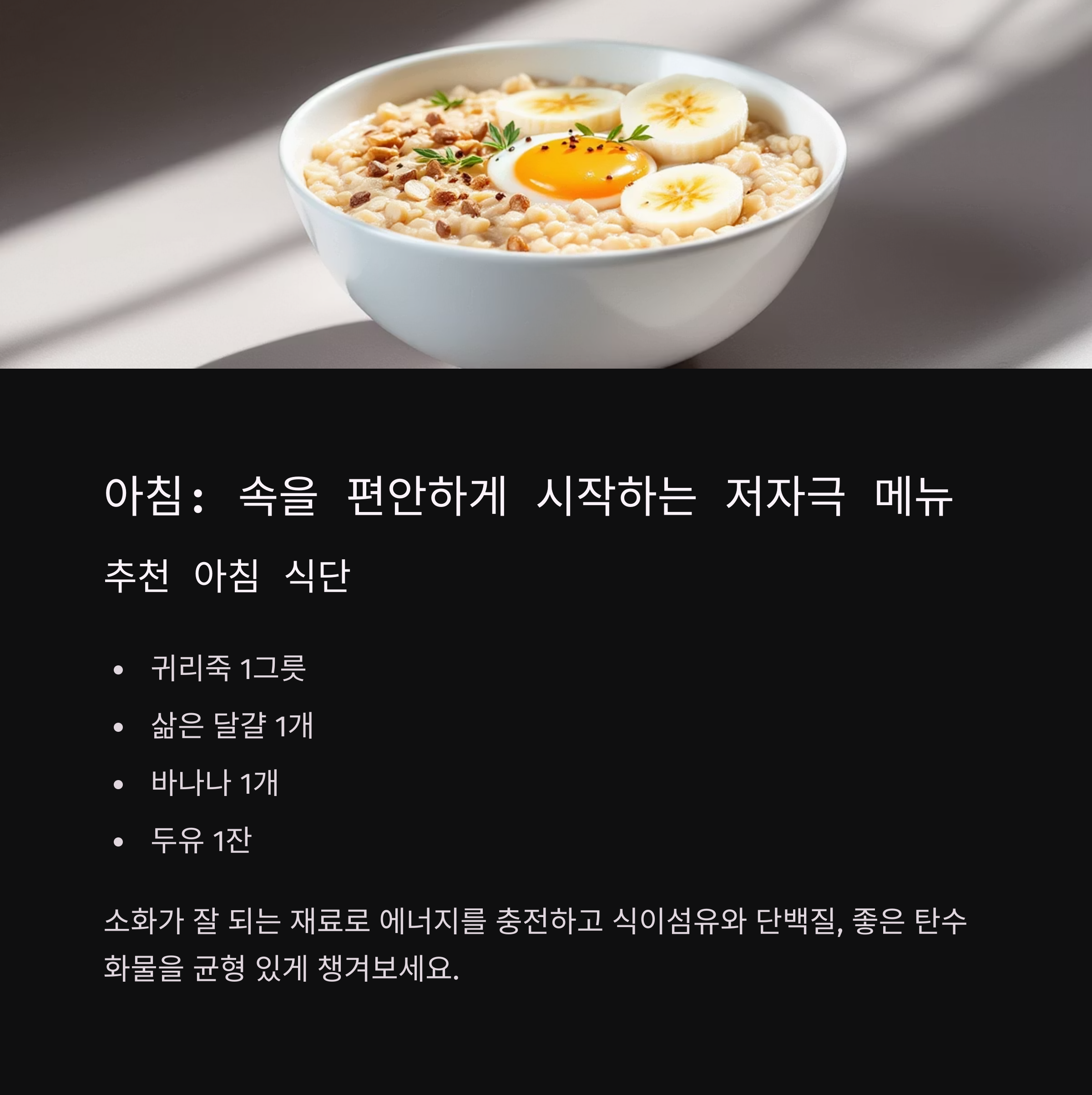 아침: 속을 편안하게 시작하는 저자극 메뉴