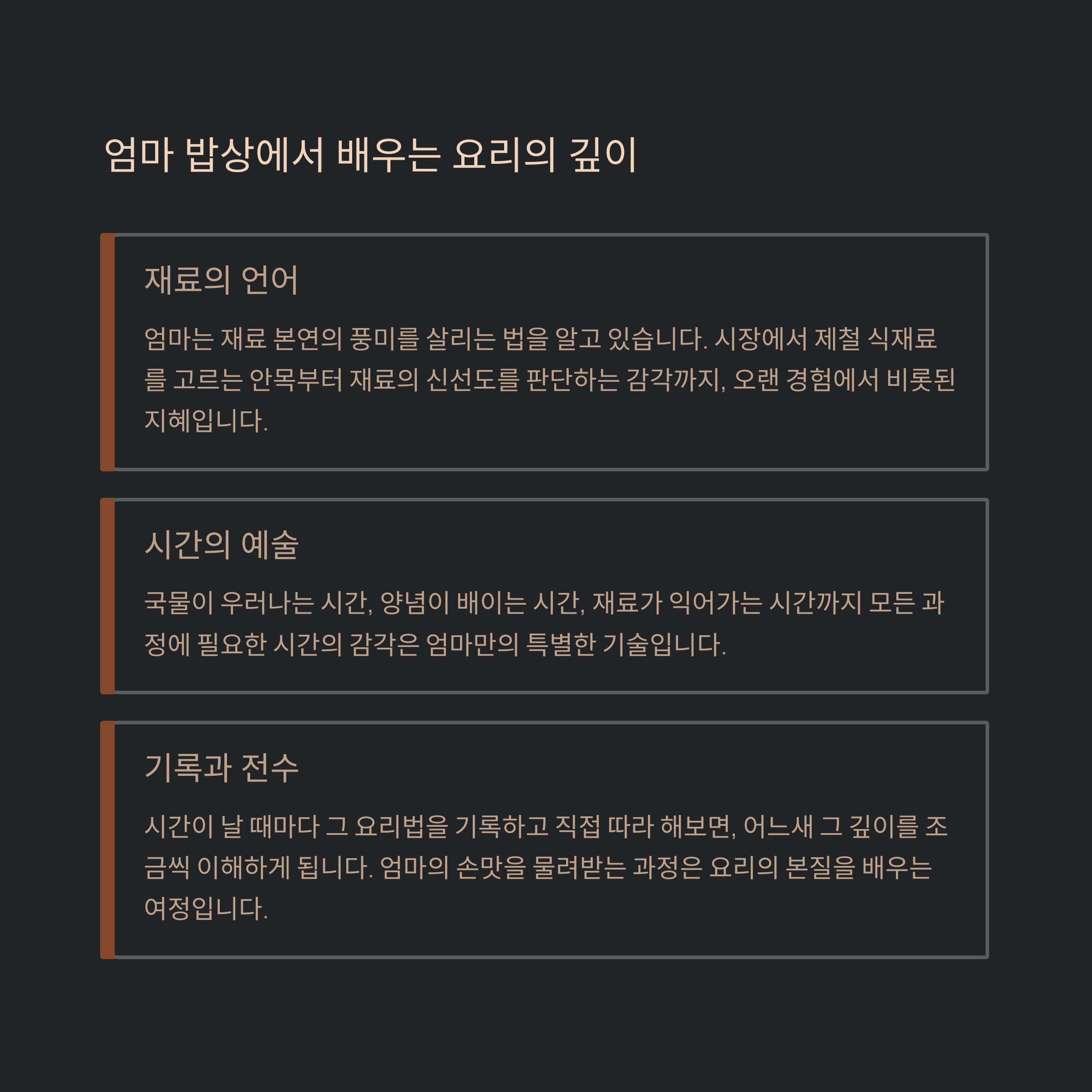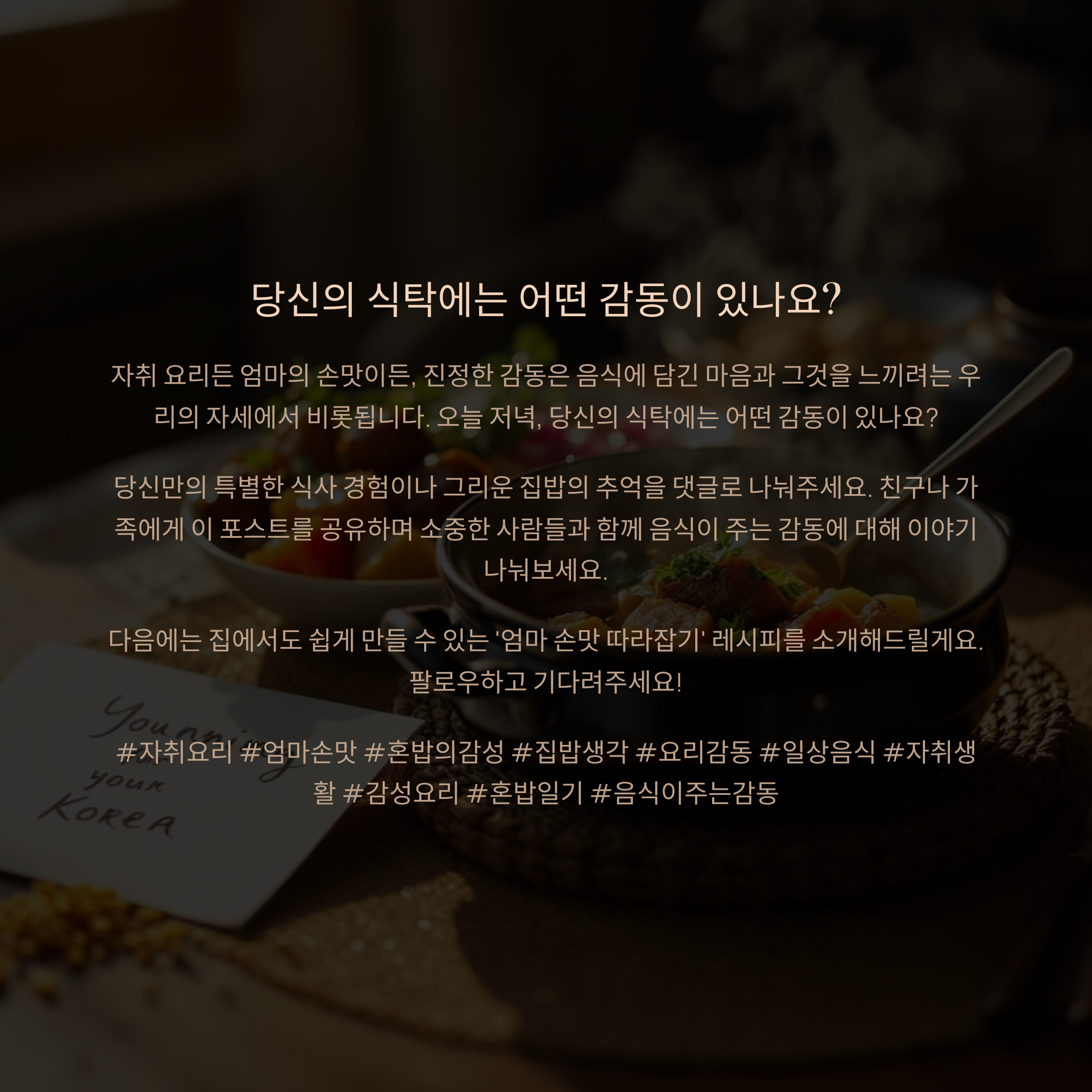 자취 요리 vs 엄마 손맛, 진짜 감동은 어디서 올까?