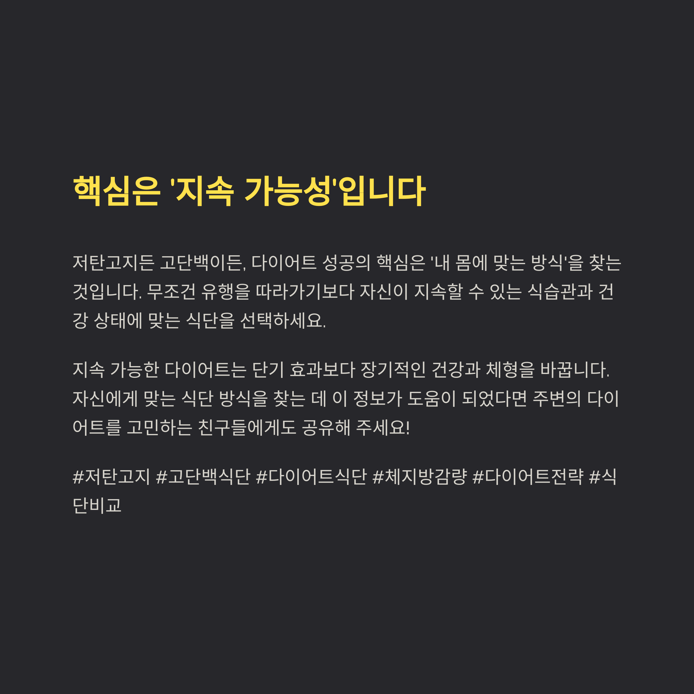 저탄고지든 고단백이든, 핵심은 '내 몸에 맞는 방식'입니다.