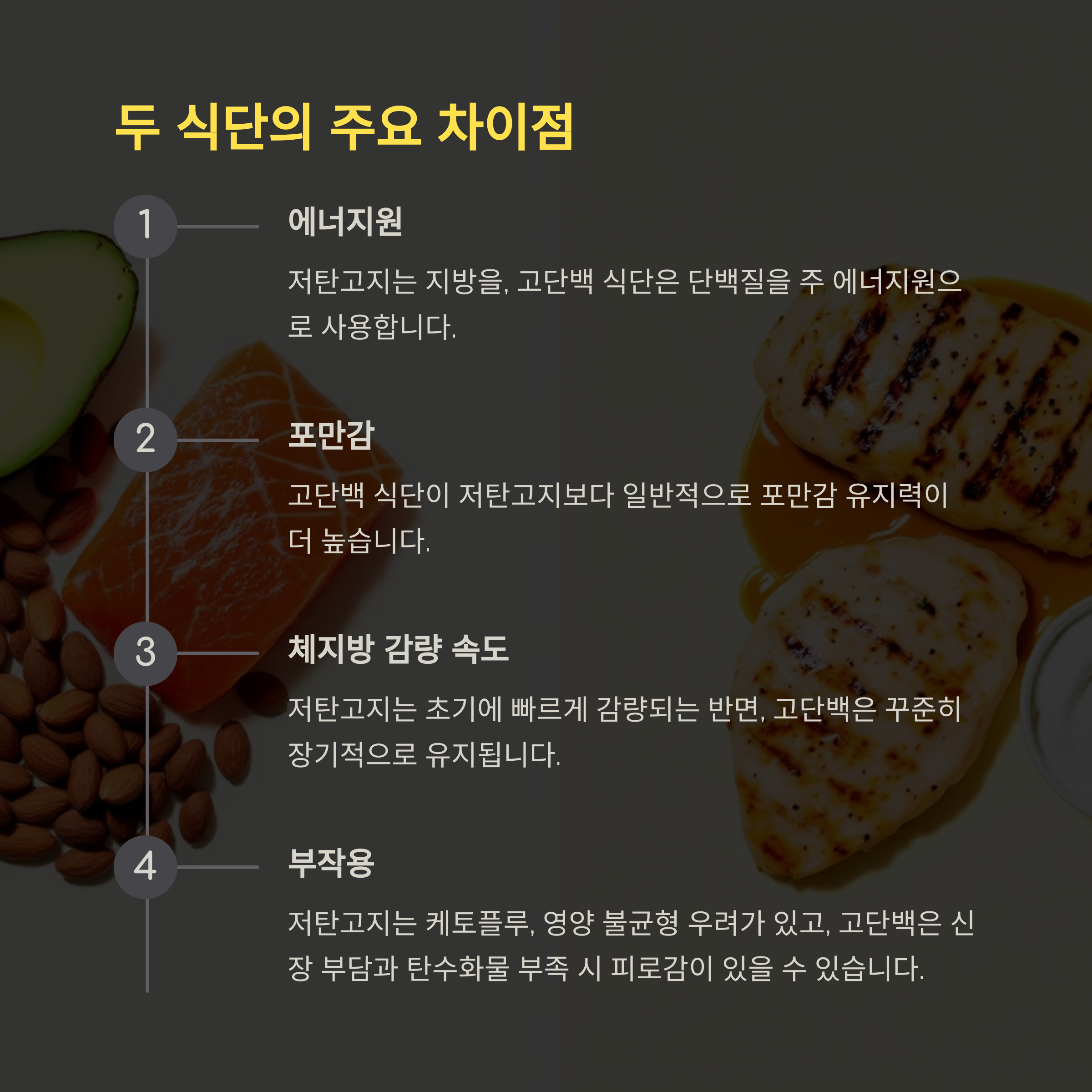 구분 저탄고지 식단 고단백 식단