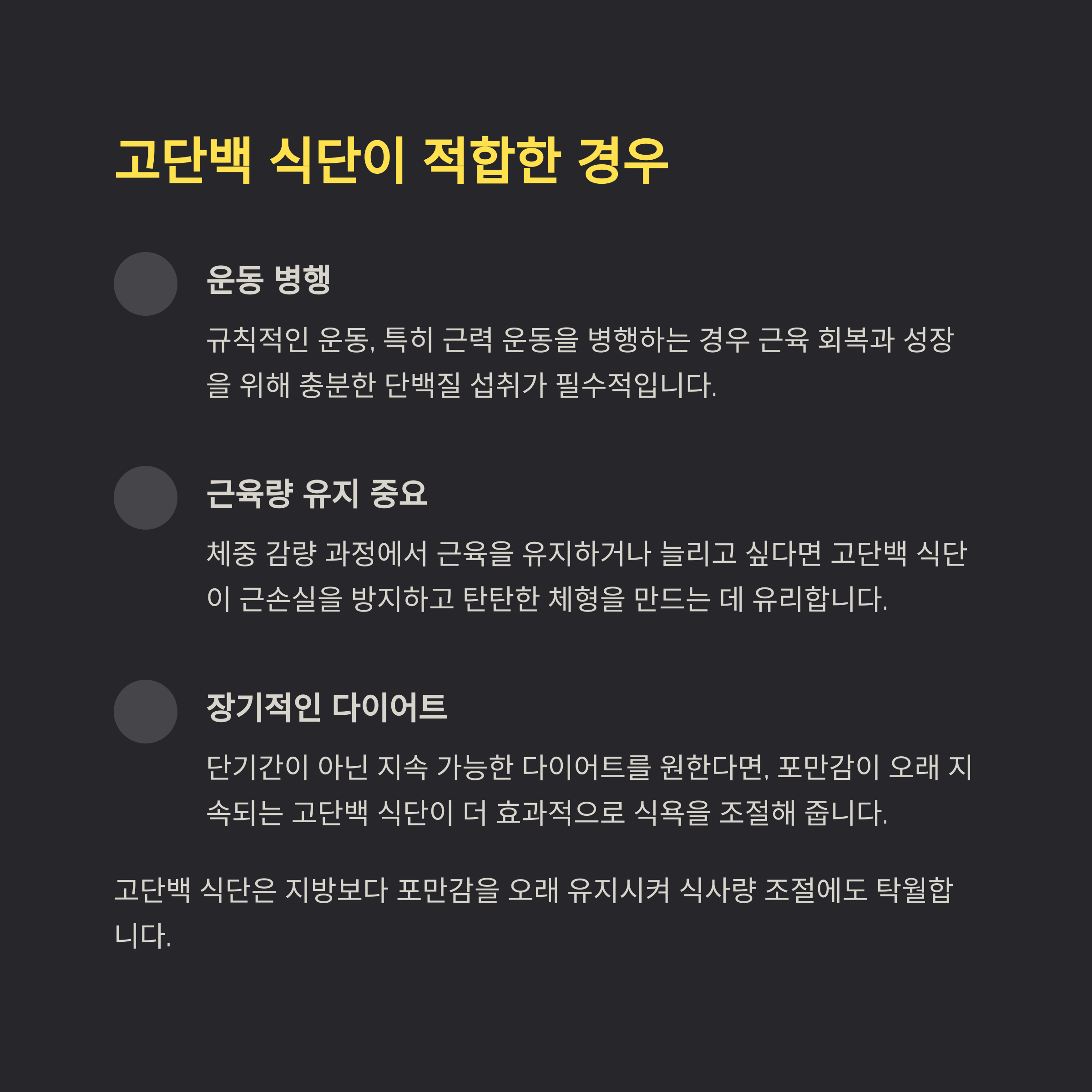 또는 장기적인 다이어트를 원하는 경우 고단백 식단이 더 알맞습니다.
