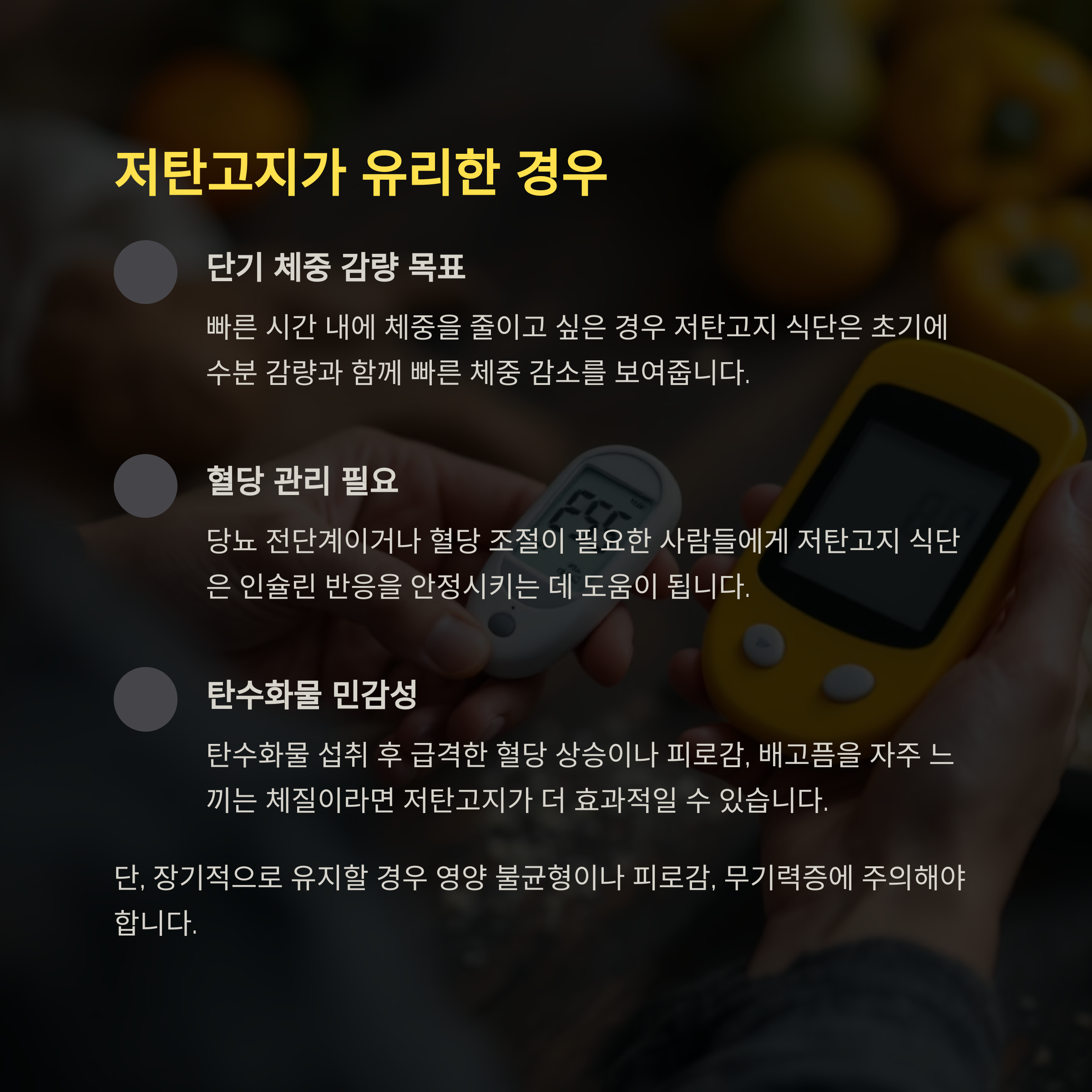 | 혈당 조절이 필요한 경우 | 저탄고지 식단 |