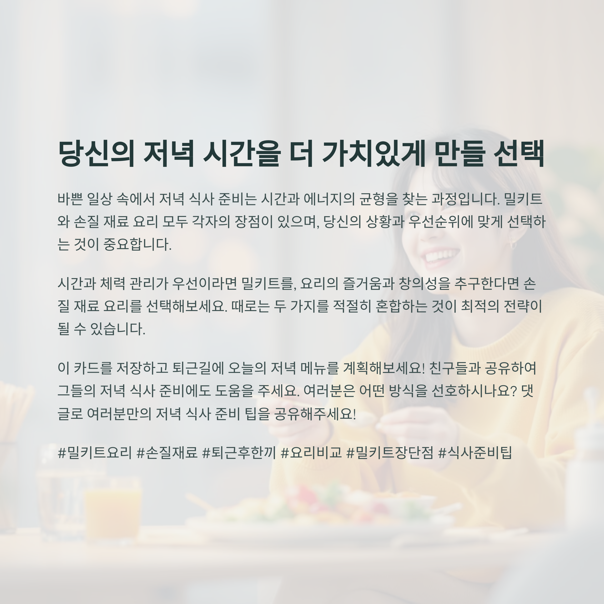 밀키트 vs 손질 재료 요리, 퇴근 후 최고의 선택은?