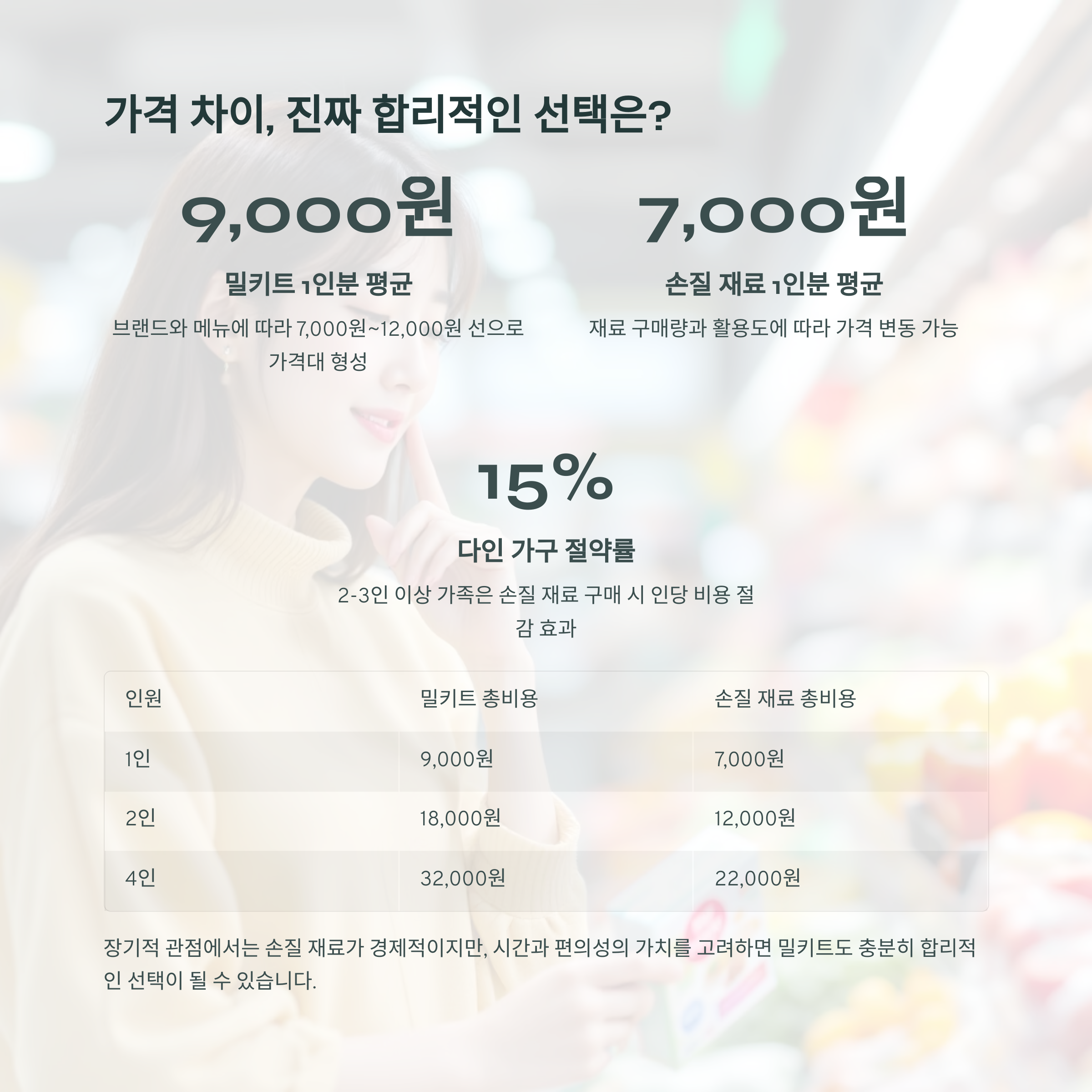시간과 편의성까지 포함하면 밀키트도 경쟁력 있습니다.