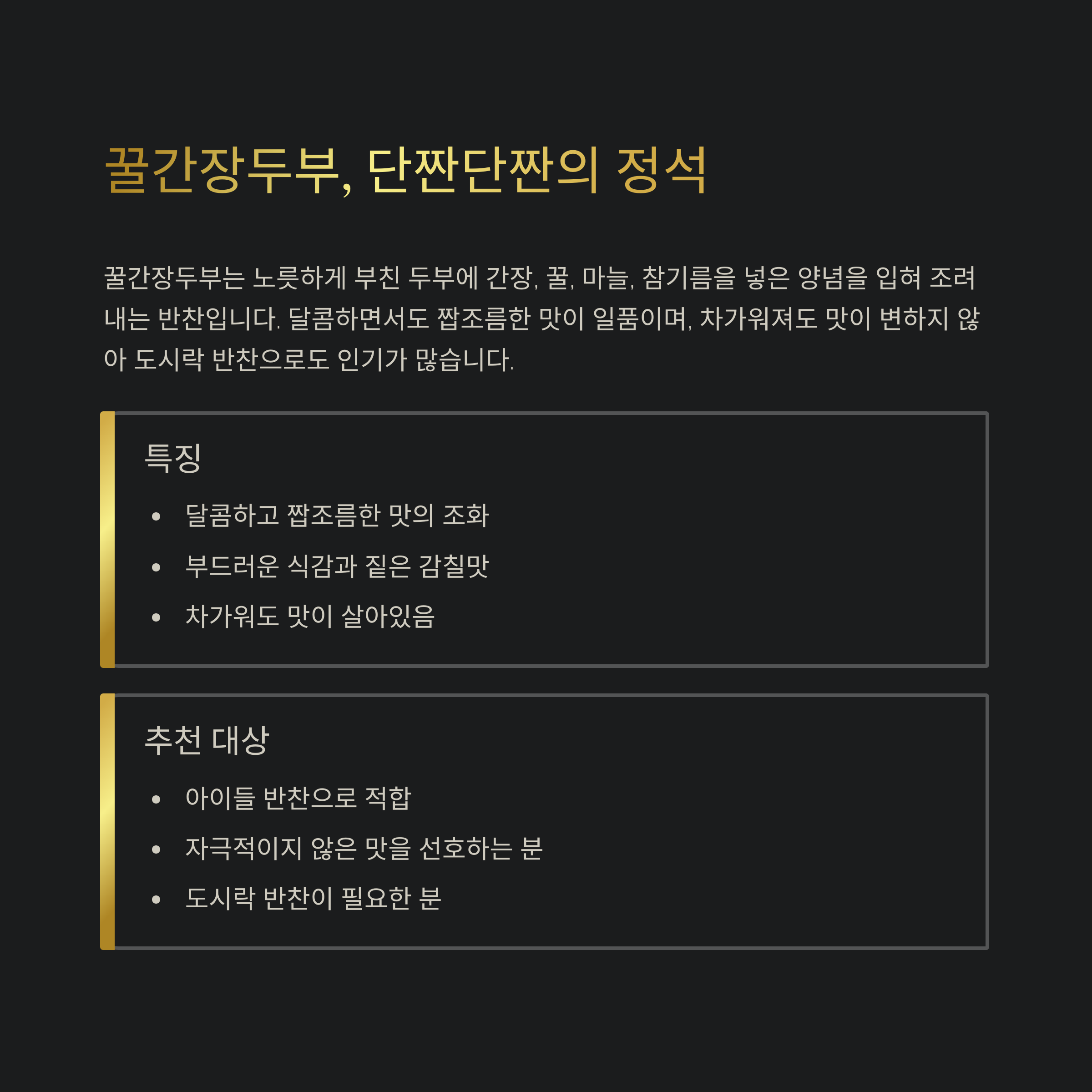 꿀간장두부, 단짠단짠의 정석