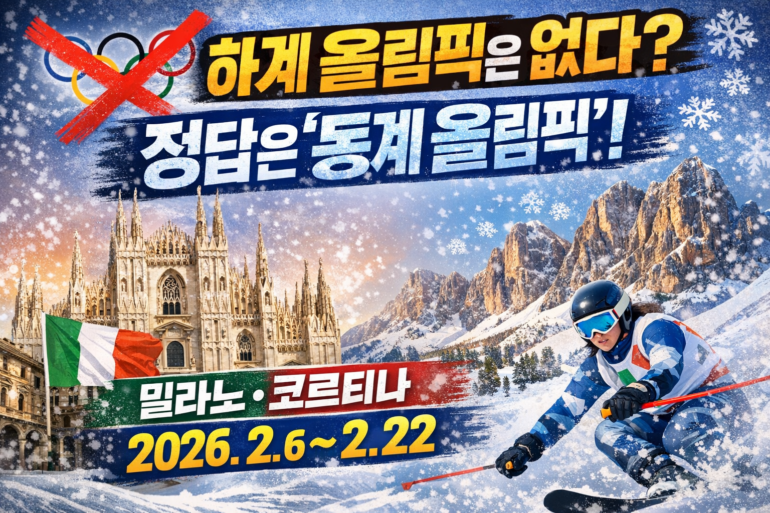 2026년 2월 6일부터 22일까지 진행되는 이번 동계 올림픽은 이탈리아의 세련된 도시 밀라노와 아름다운 알프스 산맥의 코르티나담페초에서 열립니다. 90분 내내 눈을 뗄 수 없는 피겨 스케이팅부터 박진감 넘치는 쇼트트랙까지, 한국 선수단의 금빛 질주가 기대되는 종목들이 가득합니다.