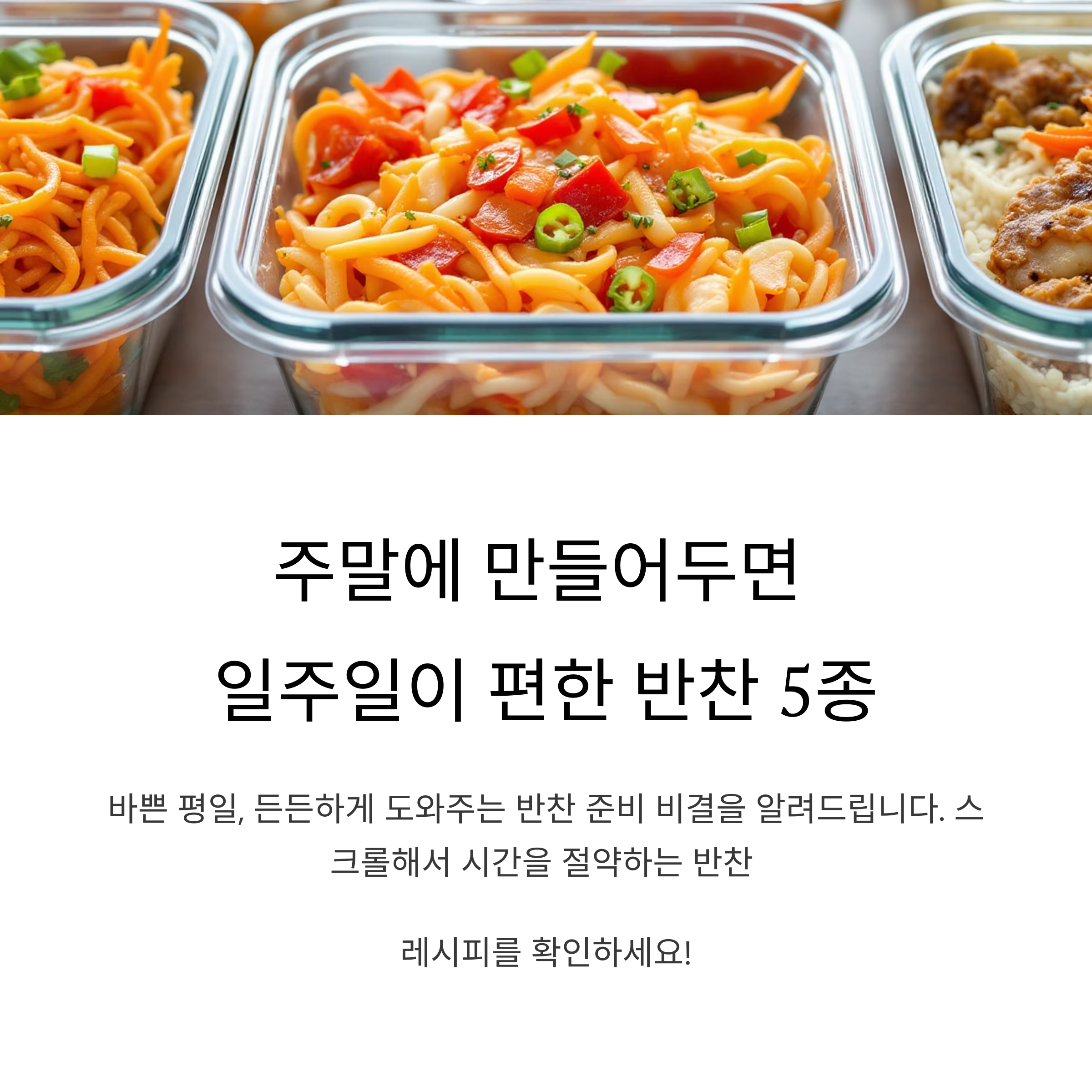 매번 반찬을 새로 만들기 어려운 평일, 미리 만들어두면 일주일 내내 걱정 없이 식사 준비가 가능합니다.