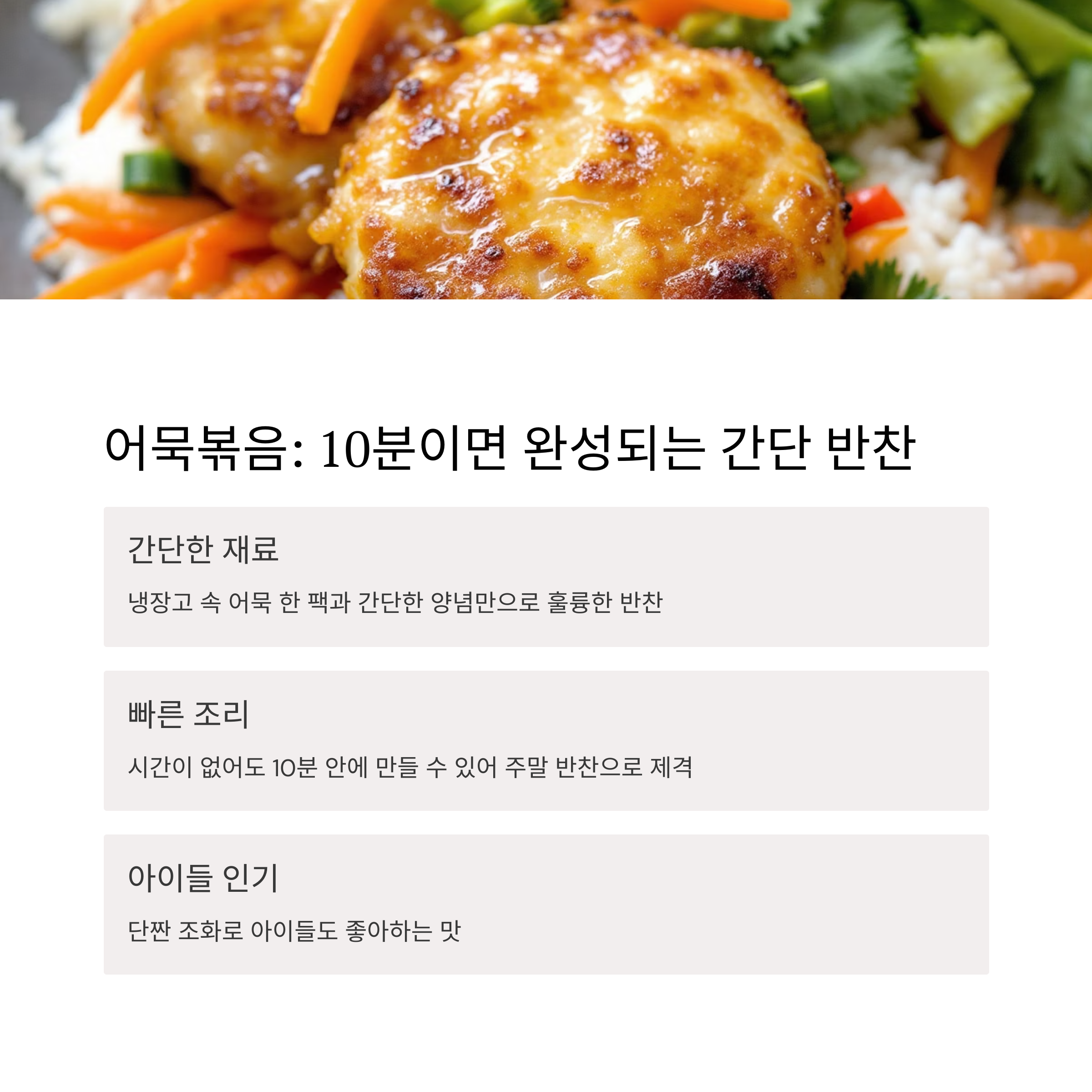 | 어묵볶음 | 약 10분 | 3~4일 | 데치면 잡내 제거 가능 |