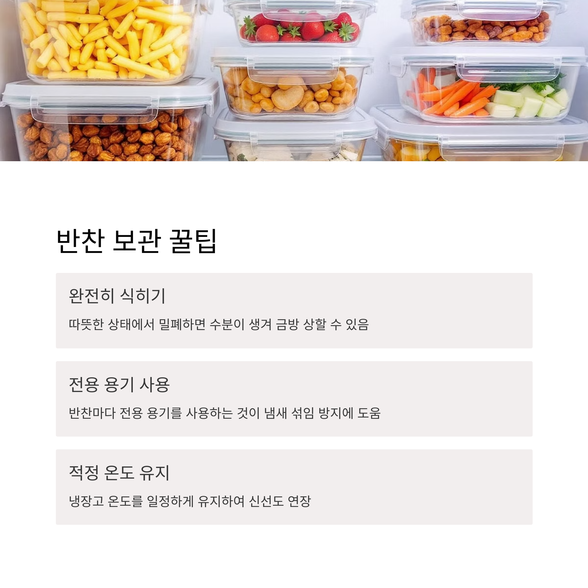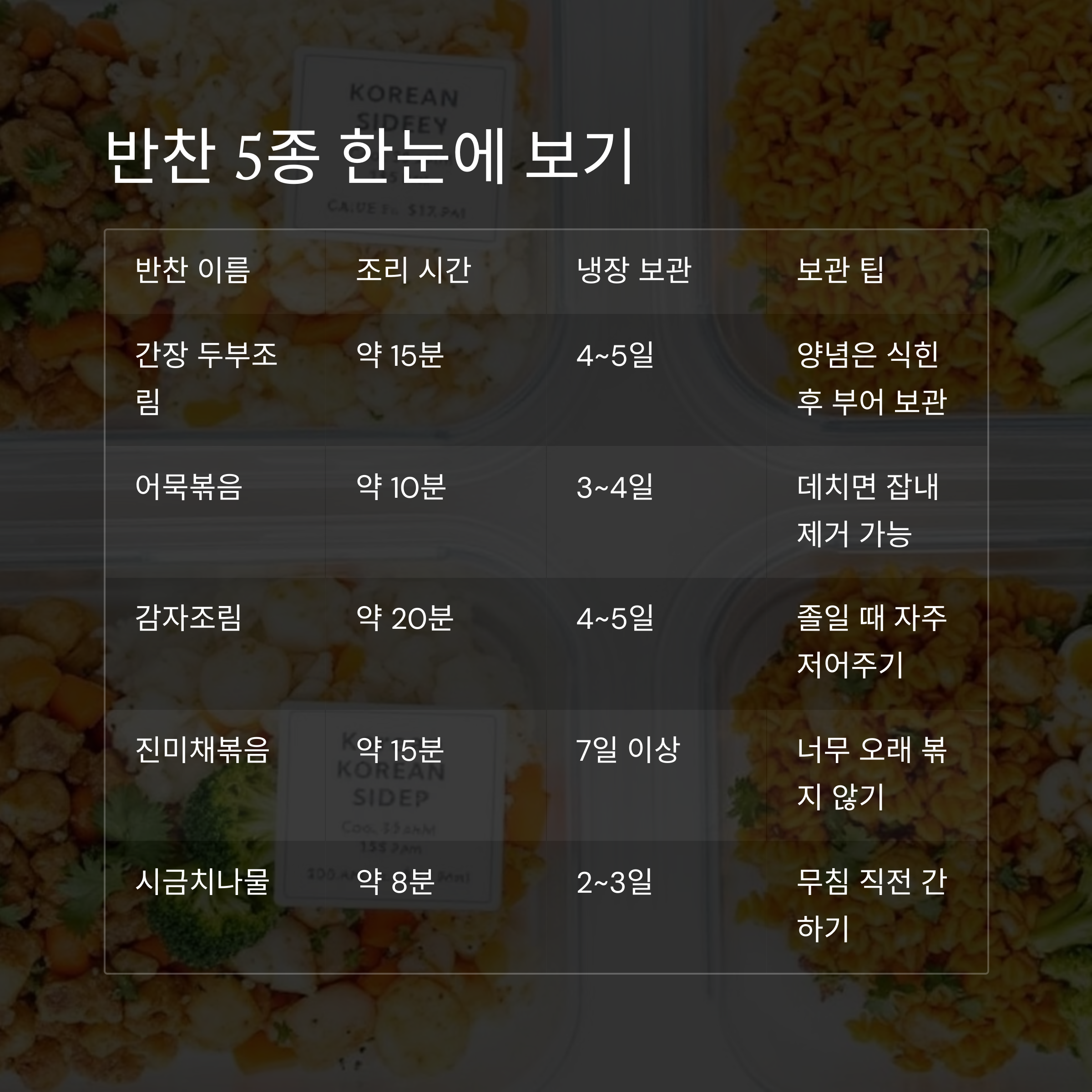 반찬 이름 조리 시간 냉장 보관 보관 팁