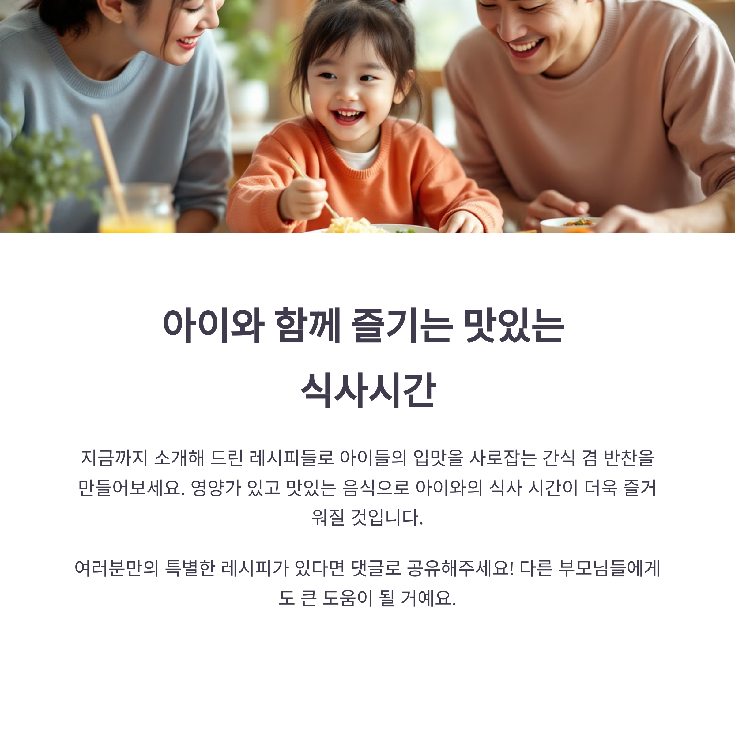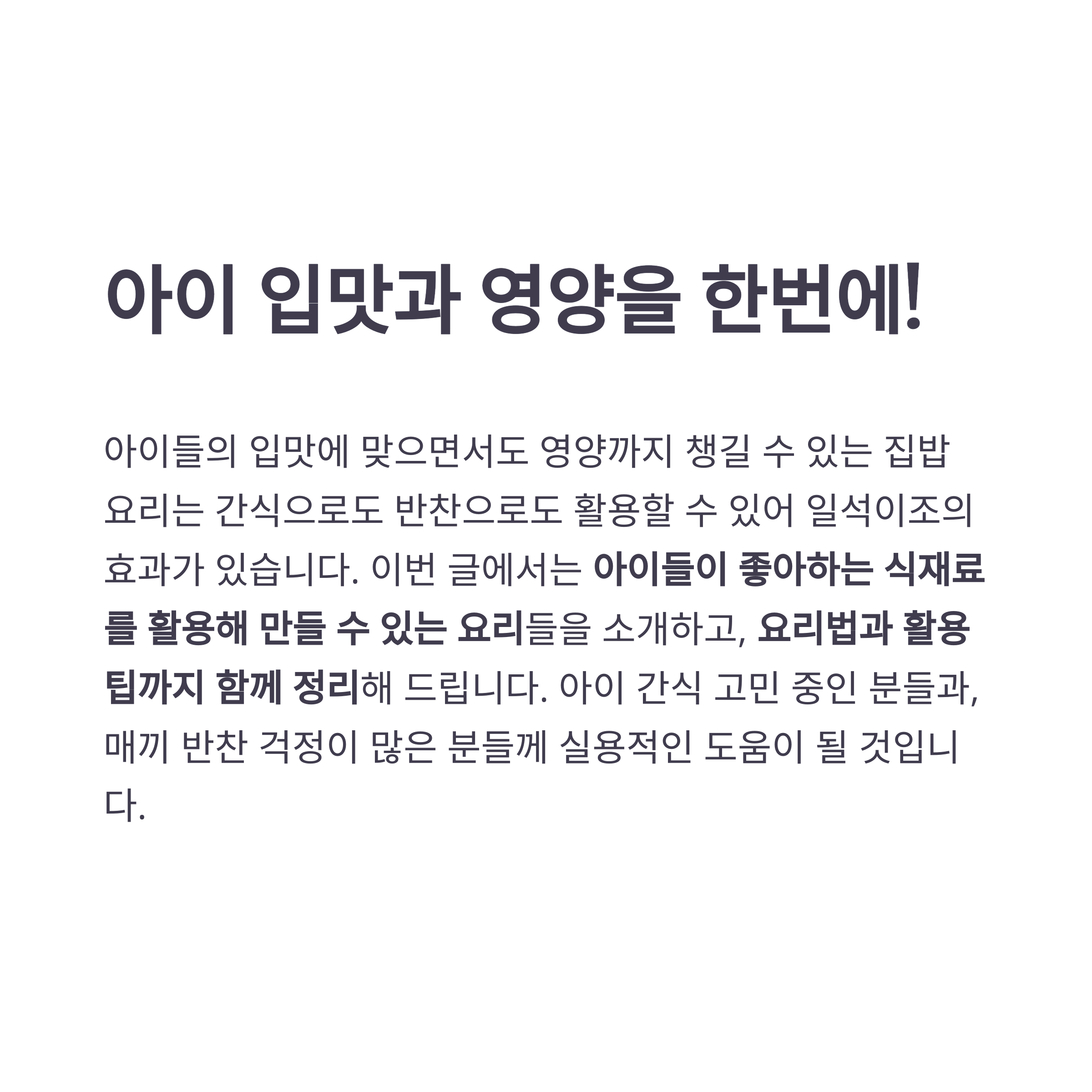 아이 간식 고민 중인 분들과, 매끼 반찬 걱정이 많은 분들께 실용적인 도움이 될 것입니다.