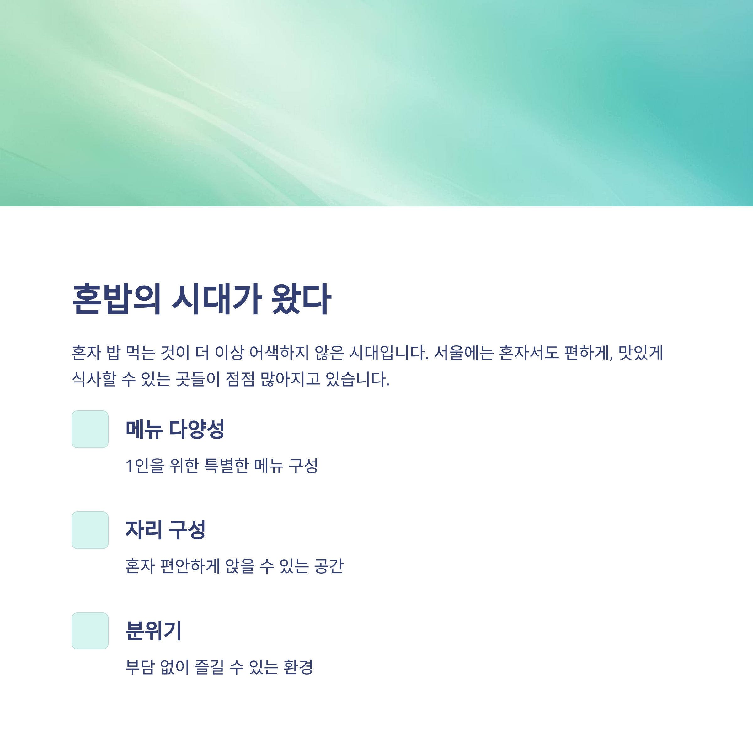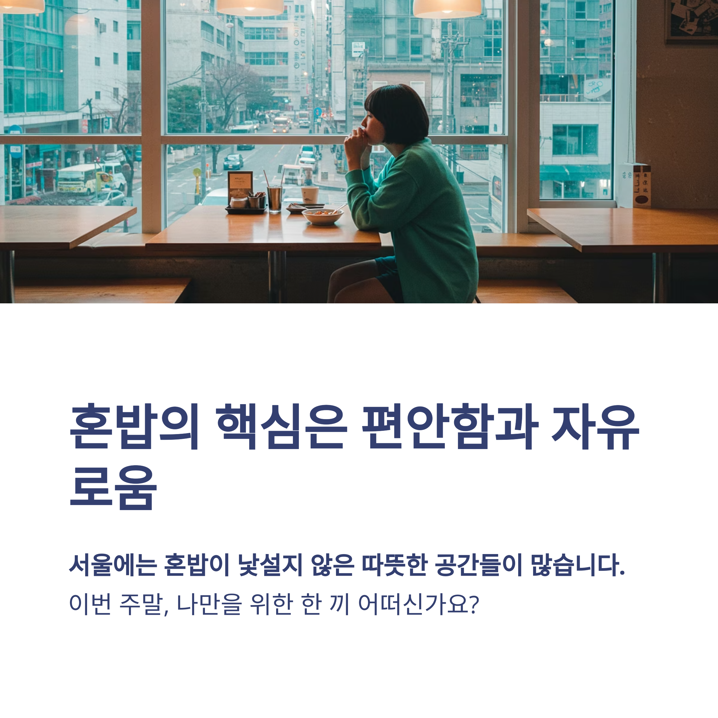 서울에는 혼밥이 낯설지 않은 따뜻한 공간들이 많습니다.