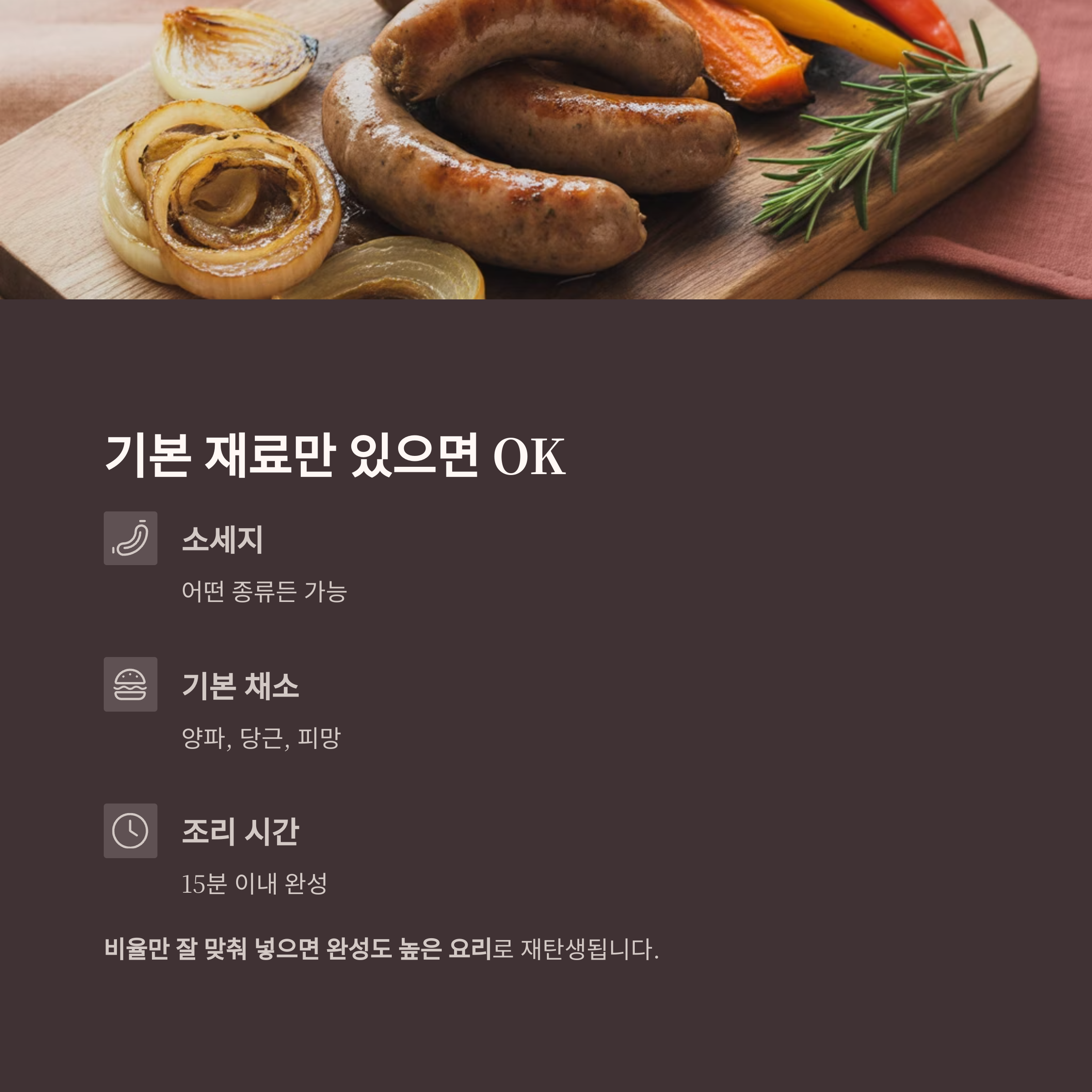 소세지, 양파, 당근, 피망만 있어도 훌륭한 한 끼가 됩니다.