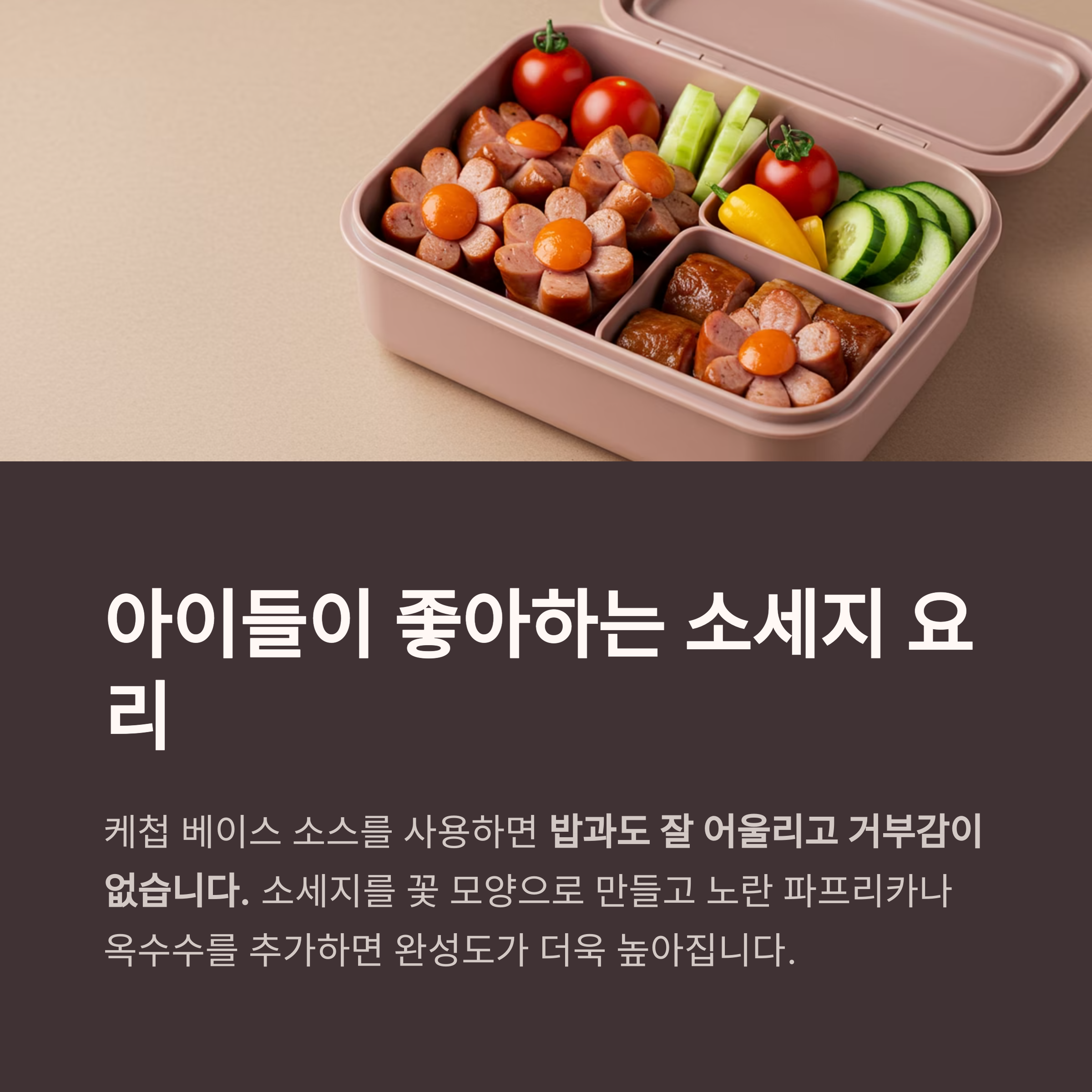 아이들이 좋아하는 케첩 베이스 소스를 사용하면 밥과도 잘 어울리고 거부감이 없습니다.
