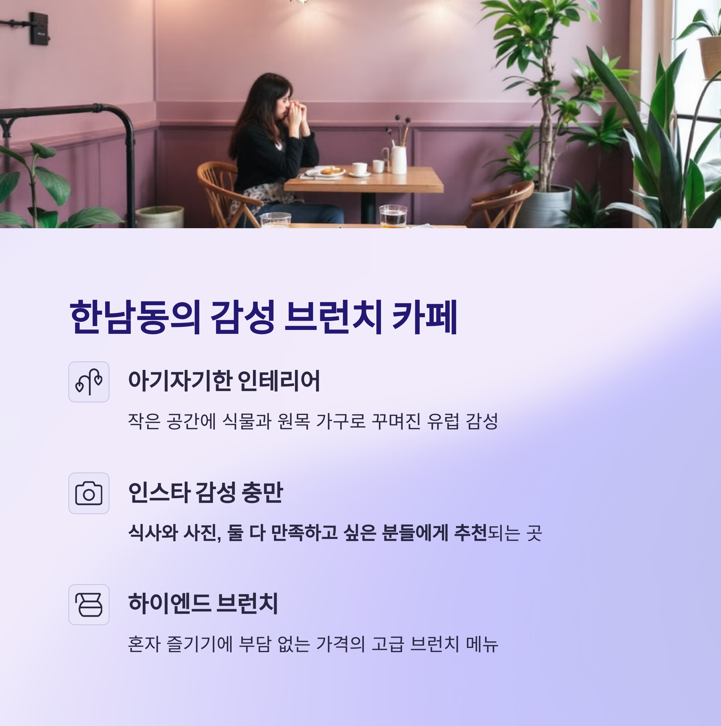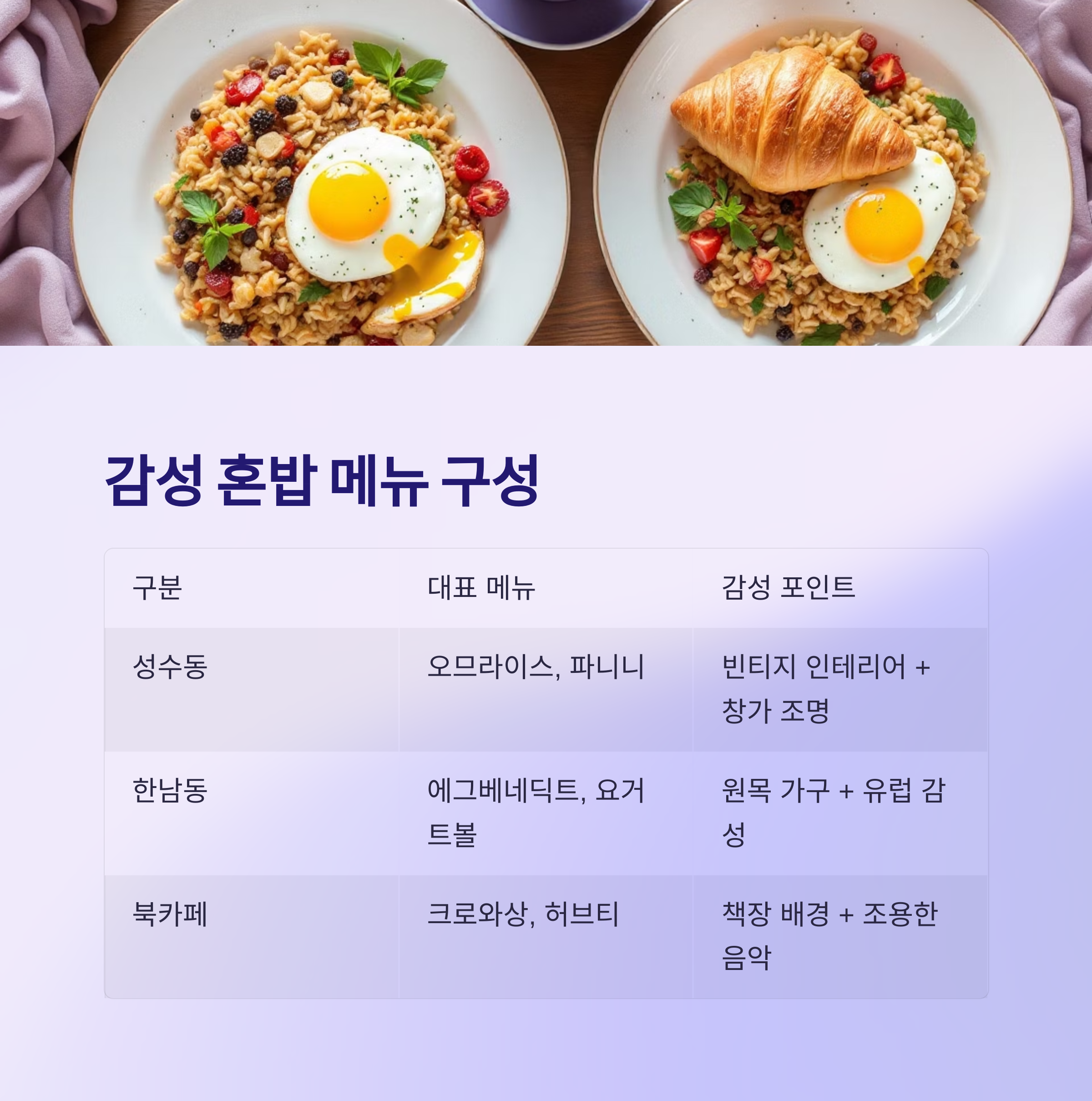 | 한남동 | 에그베네딕트, 요거트볼 | 원목 가구 + 유럽 감성 |