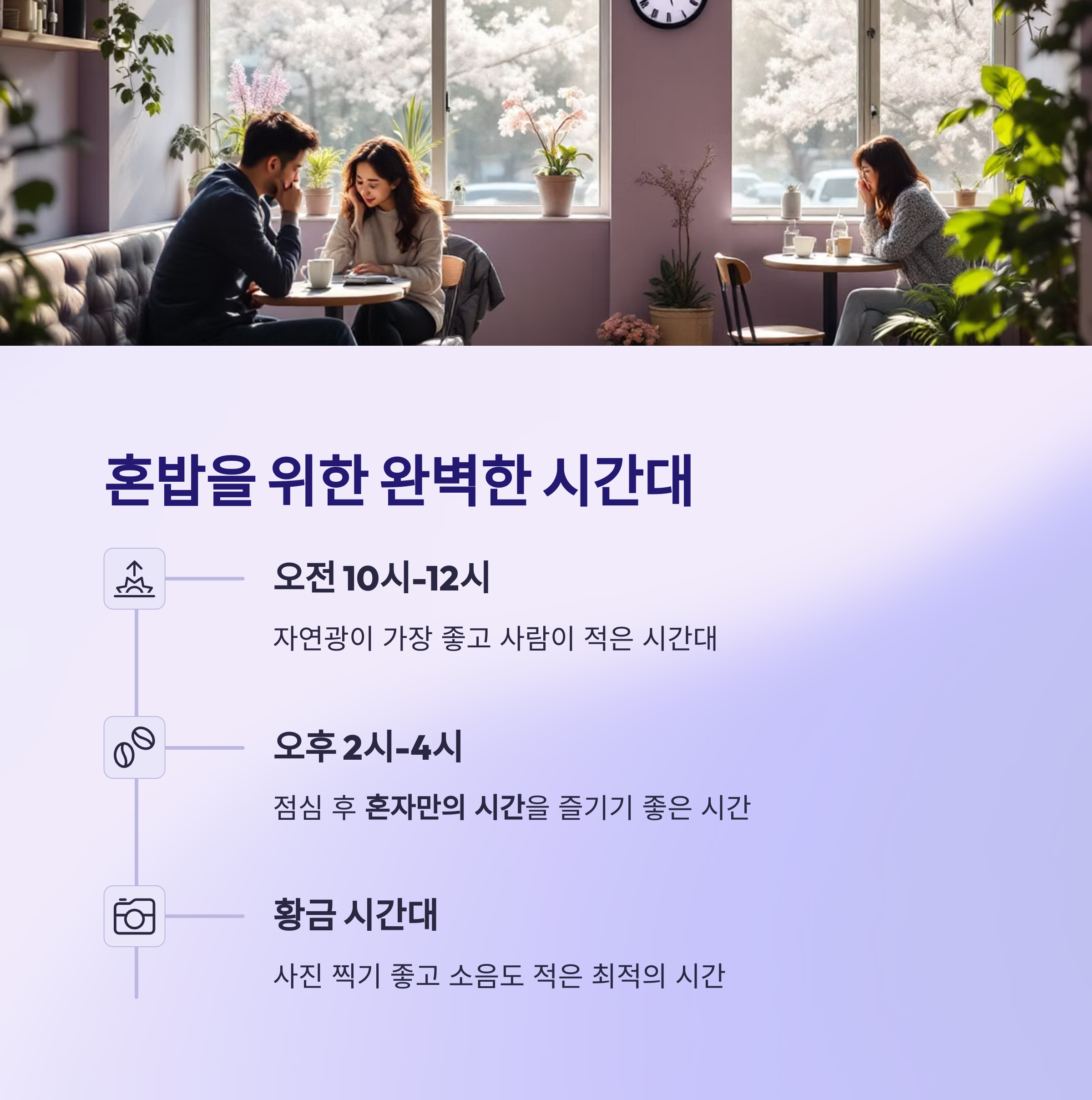 대부분의 혼밥 카페는 아침 시간대나 점심 직후 방문하면
