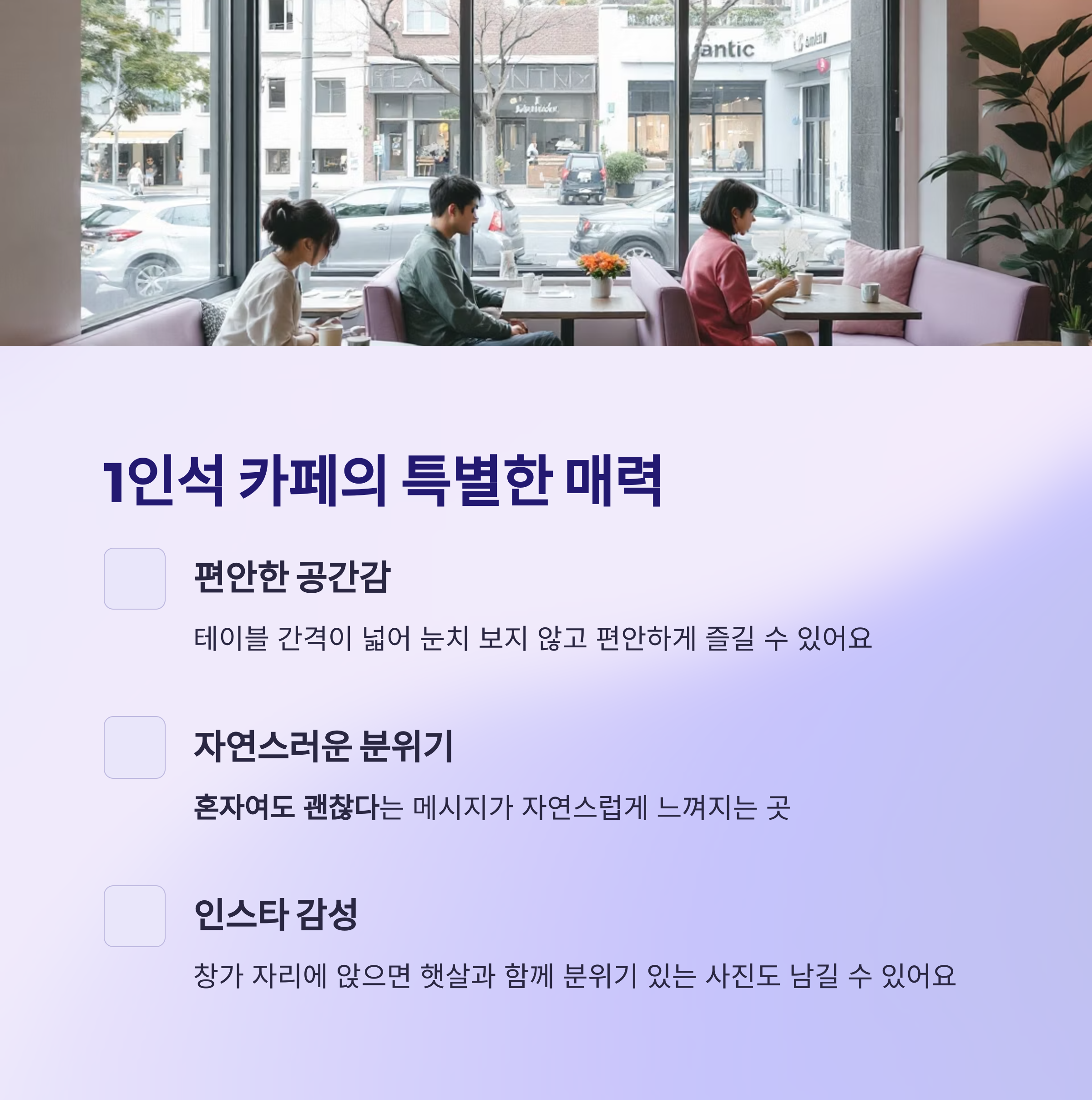 "혼자여도 괜찮다"는 메시지가 자연스럽게 느껴지는 곳, 바로 이런 카페들입니다.