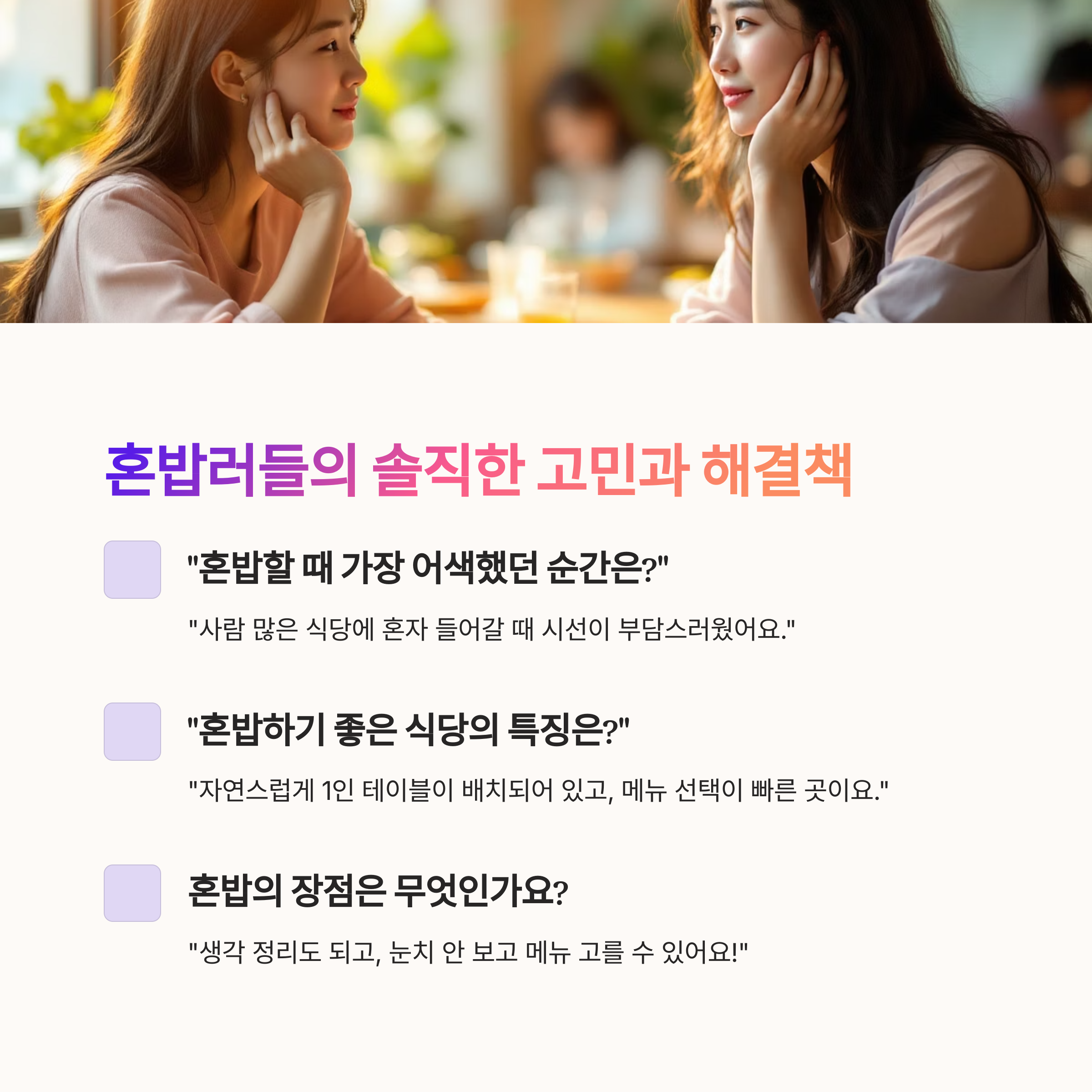 Q&A: 혼밥러들이 직접 답한 고민과 솔루션