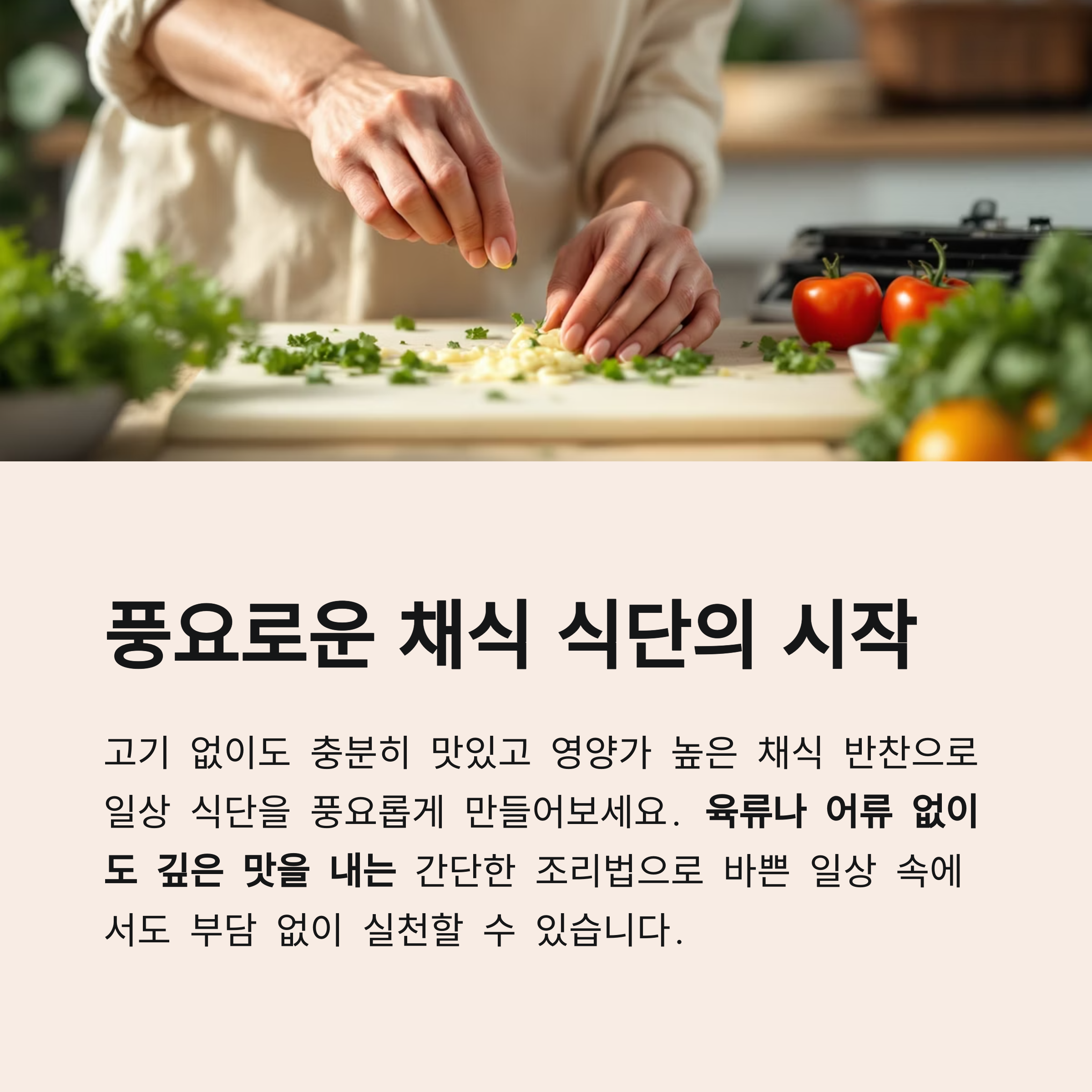 고기 없이도 충분히 맛있고 영양가 높은 채식 반찬은 일상 속 식단을 더욱 풍요롭게 만듭니다.