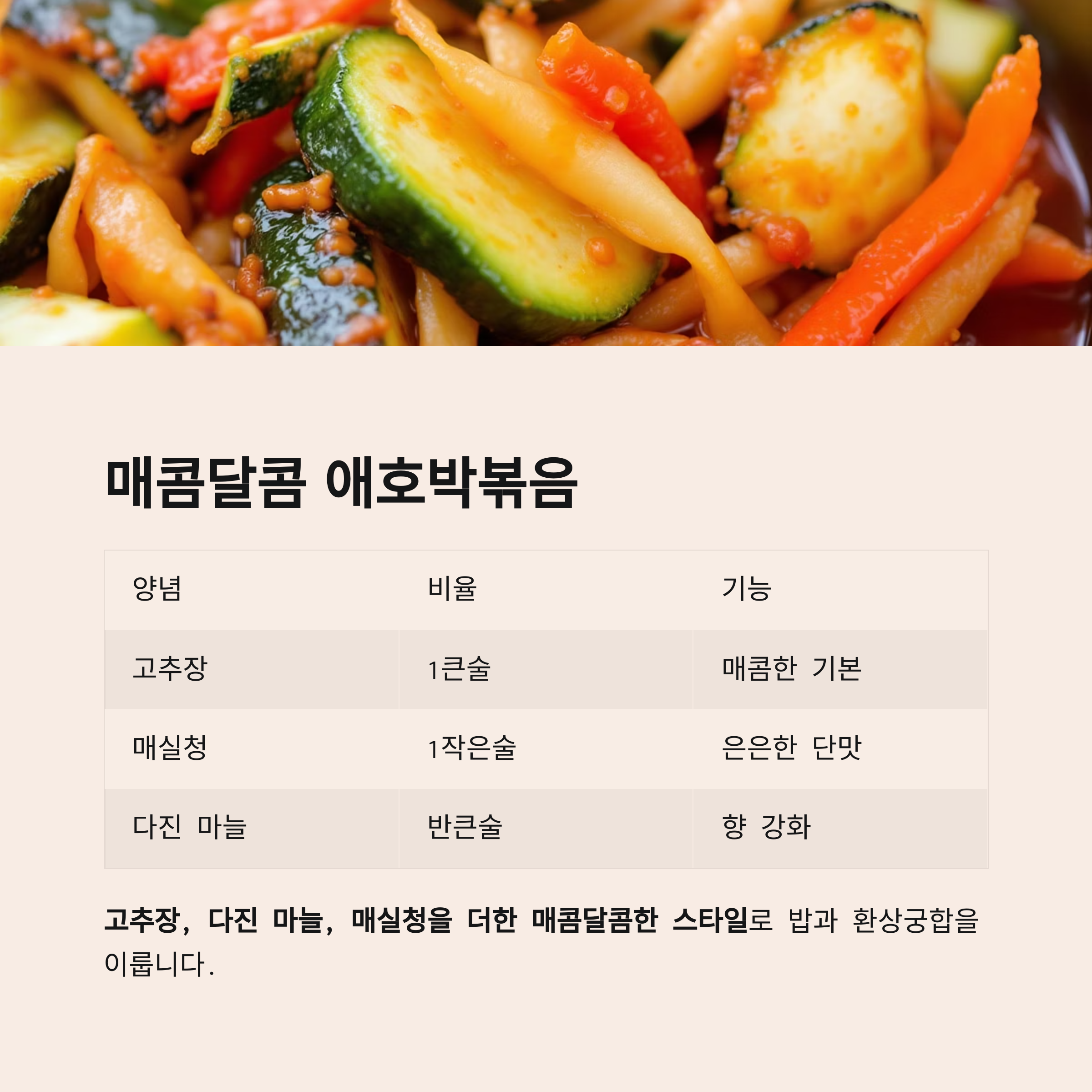 잘 익은 애호박은 볶을수록 단맛이 올라와 조미료 없이도 만족감을 줍니다.