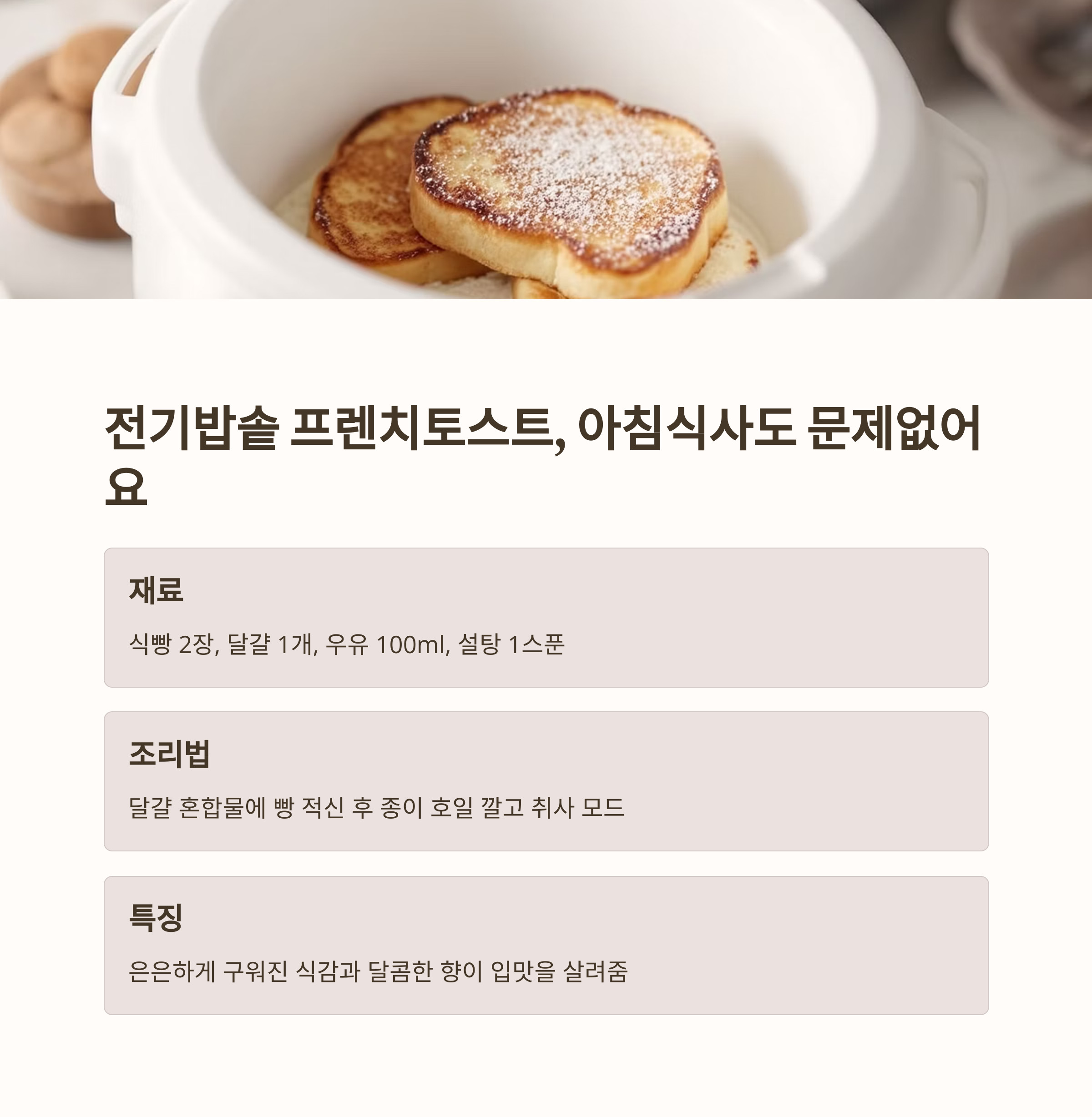 전기밥솥 프렌치토스트, 아침식사도 문제없어요