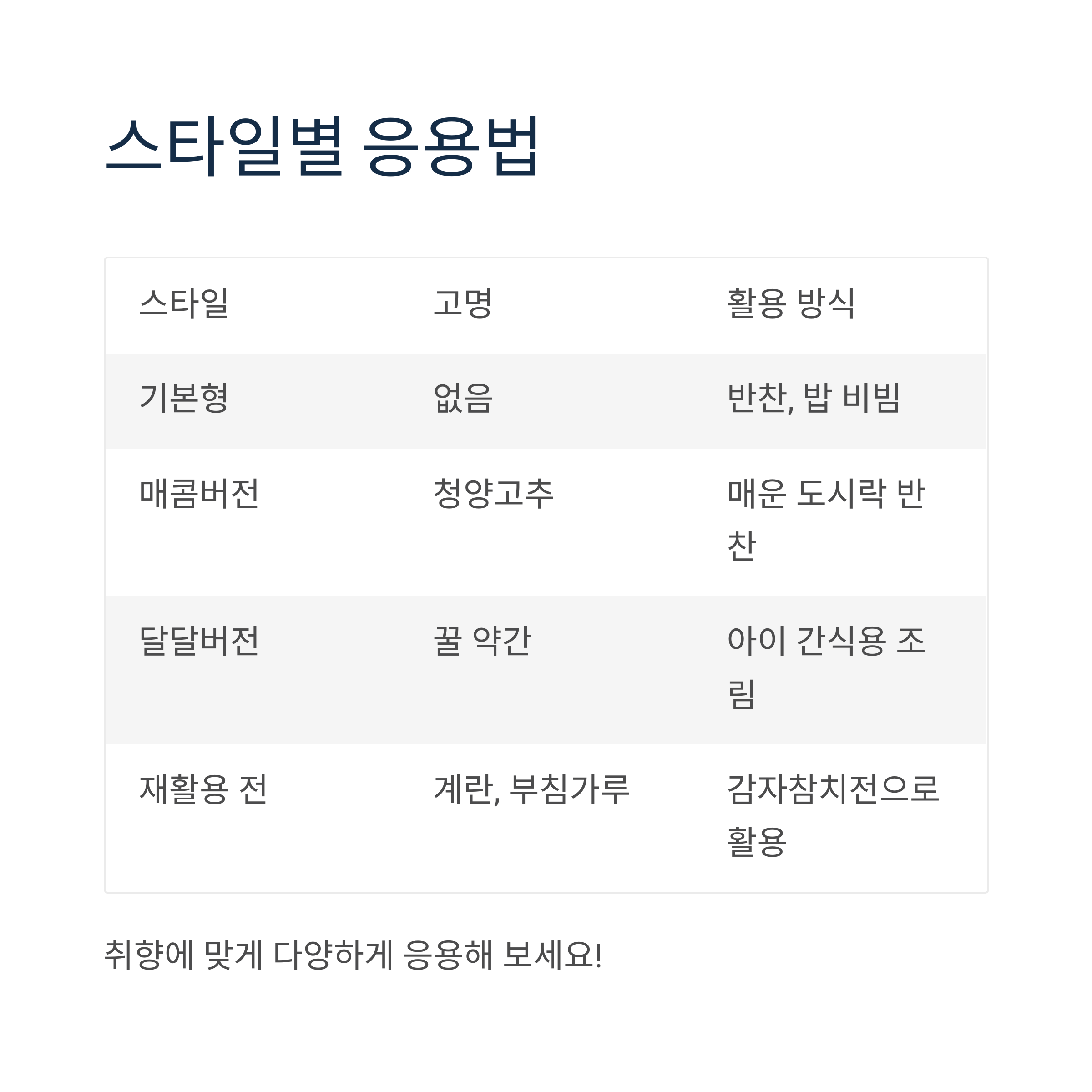 스타일별 조림 응용 표