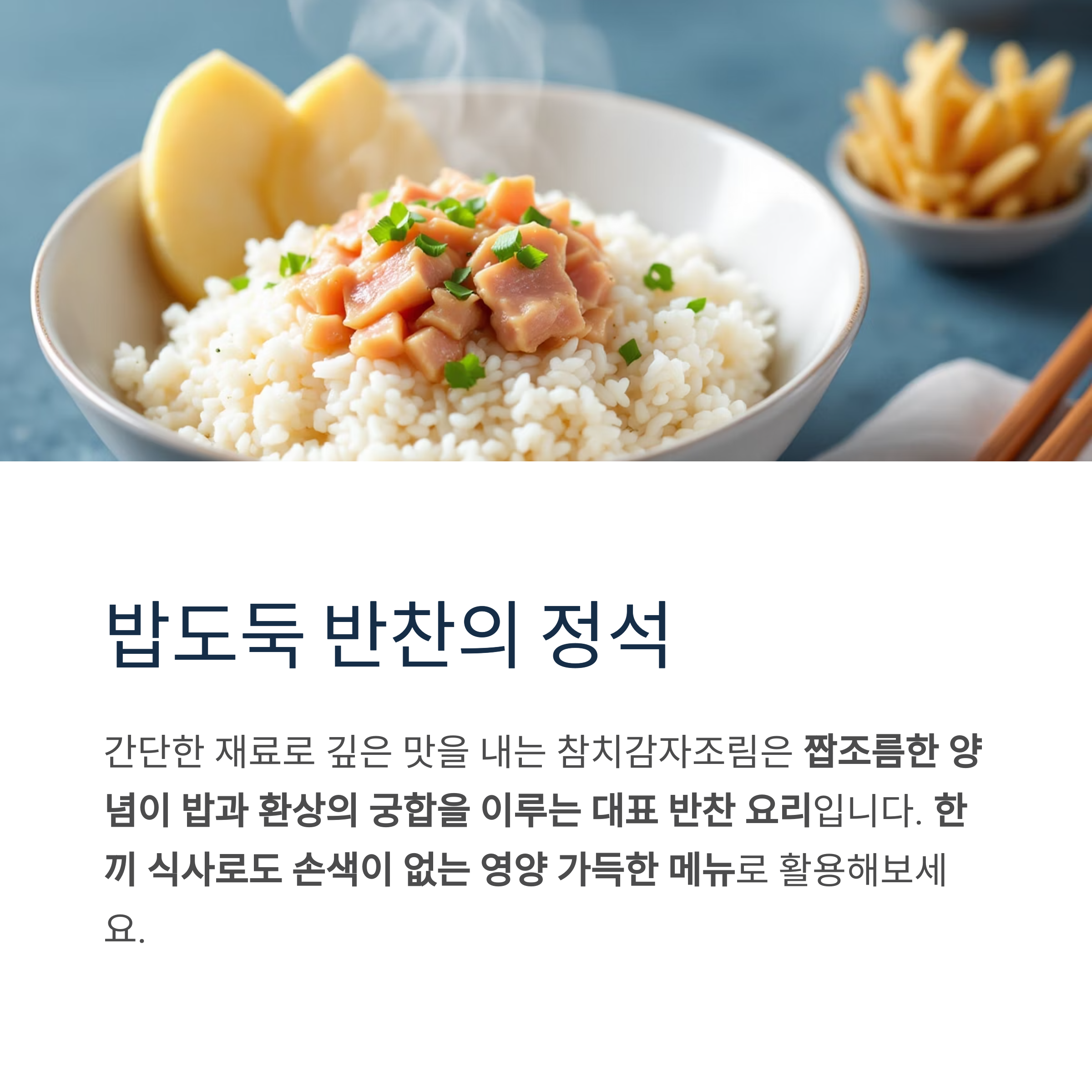 특히 감자의 부드러움과 참치의 짭조름함이 어우러져, 아이부터 어른까지 누구나 좋아하는 반찬으로 자리 잡을 수 있습니다.