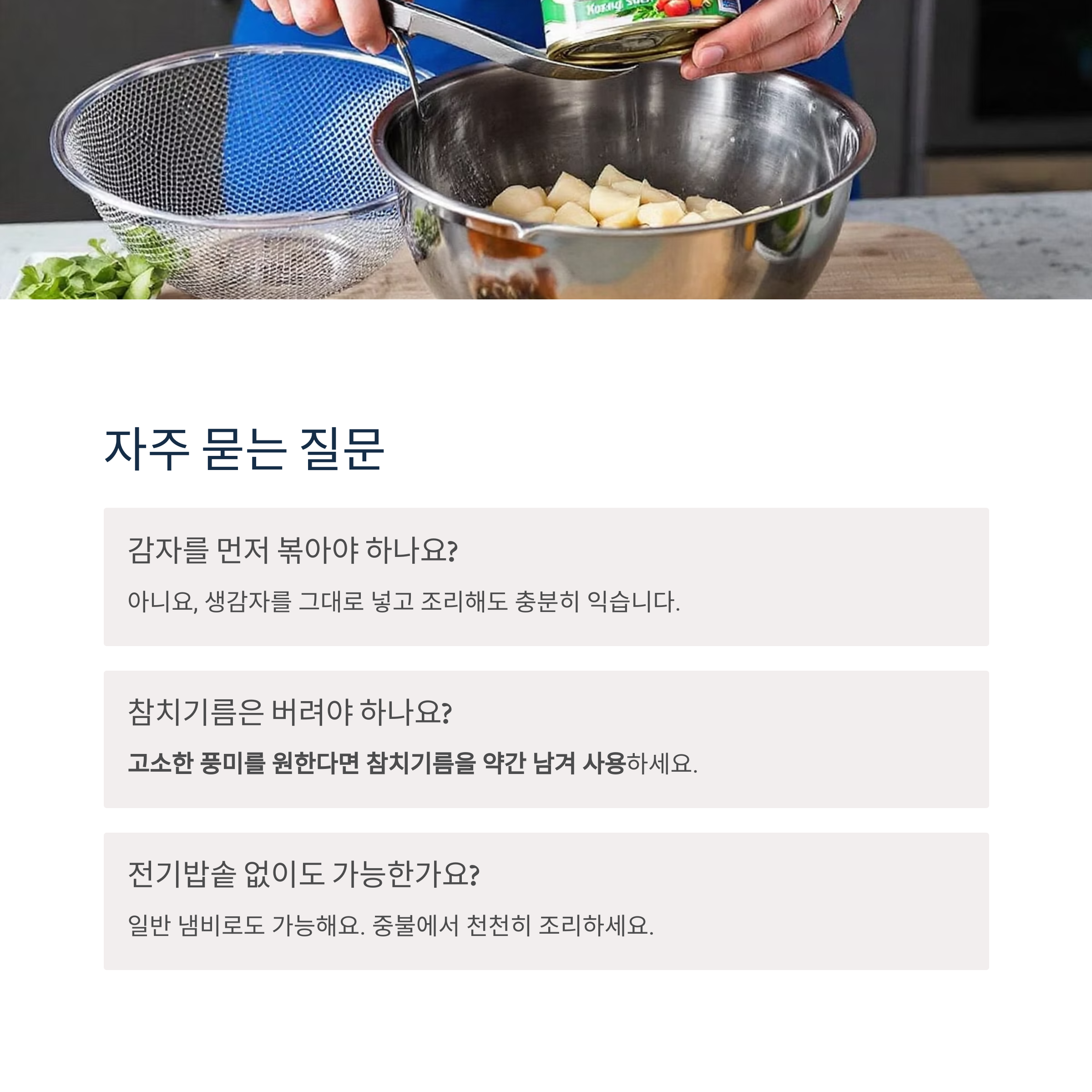 아니요, 생감자를 그대로 넣고 조리해도 충분히 익습니다.