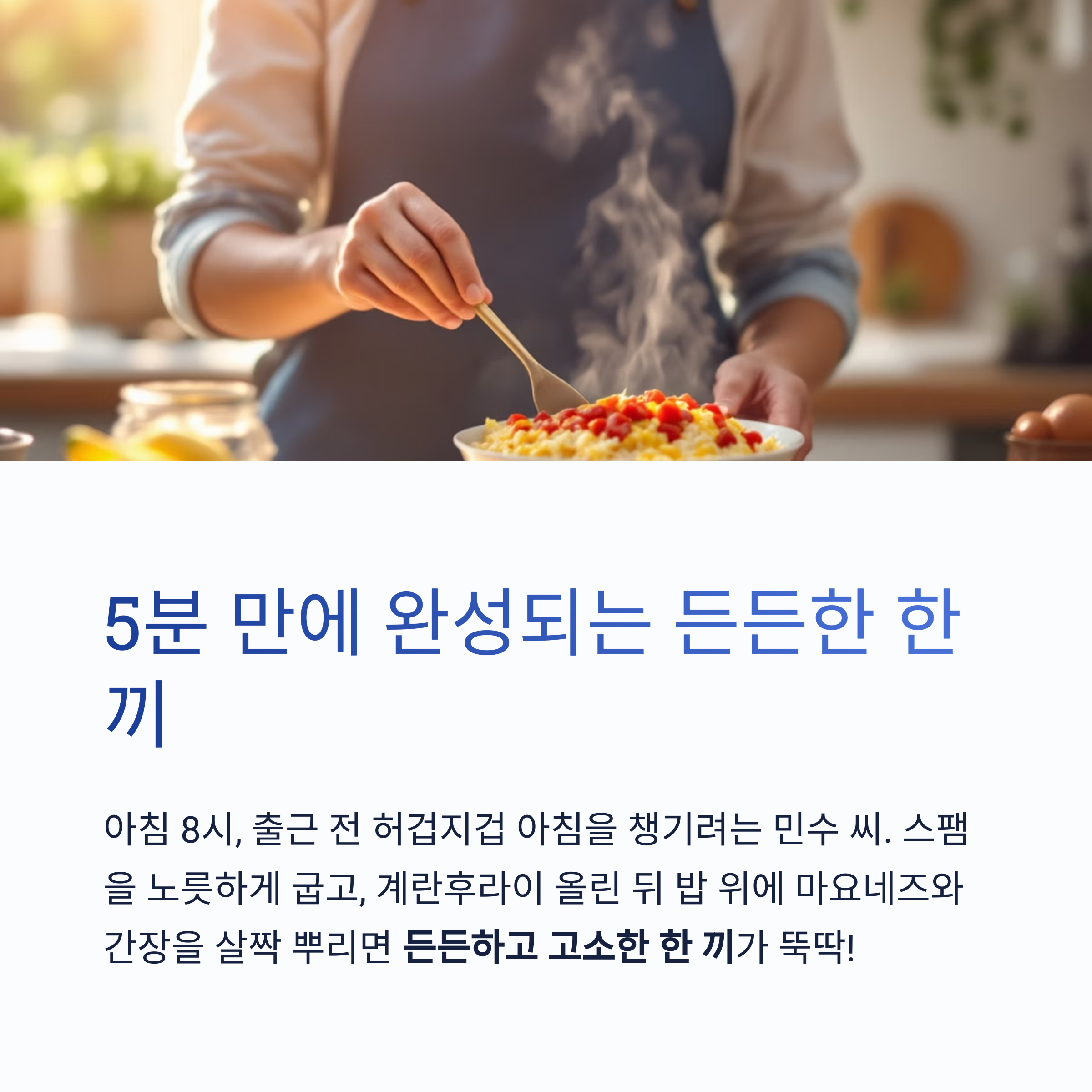 단 5분 만에 완성된 든든하고 고소한 한 끼가 뚝딱!
