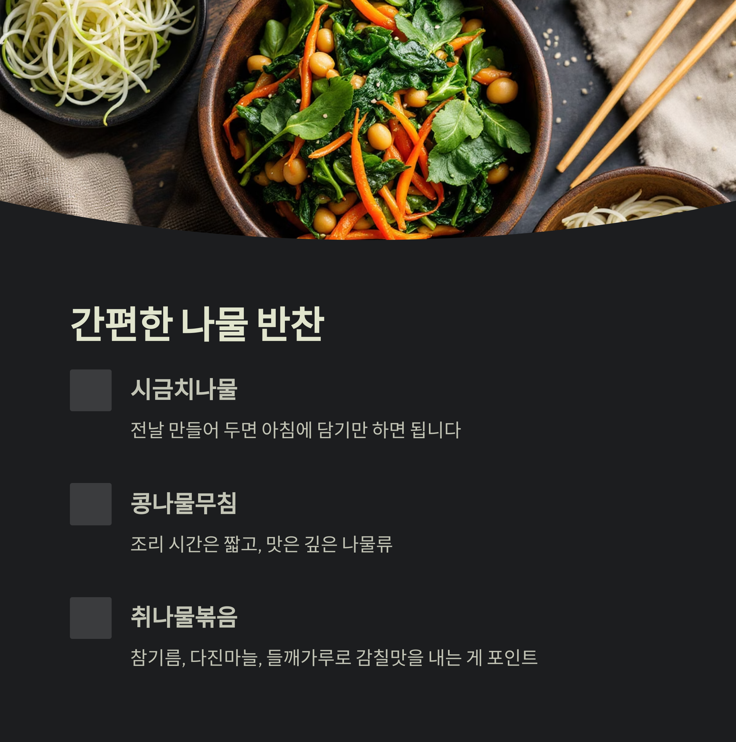 전날 저녁 30분, 반찬 3종 준비를 습관으로 만들어보세요