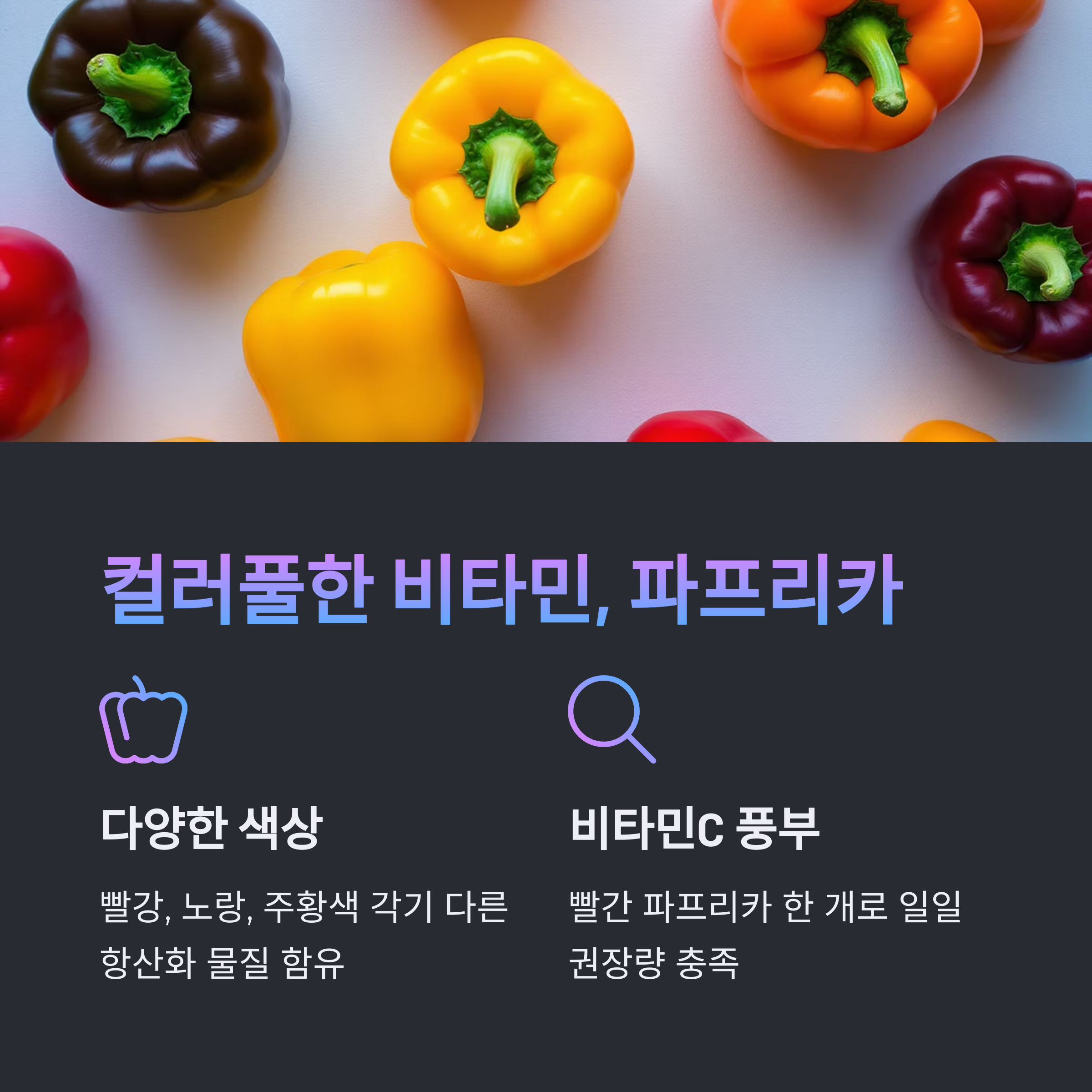 | 파프리카 | 비타민C, 항산화물질 | 산화 스트레스 완화 |