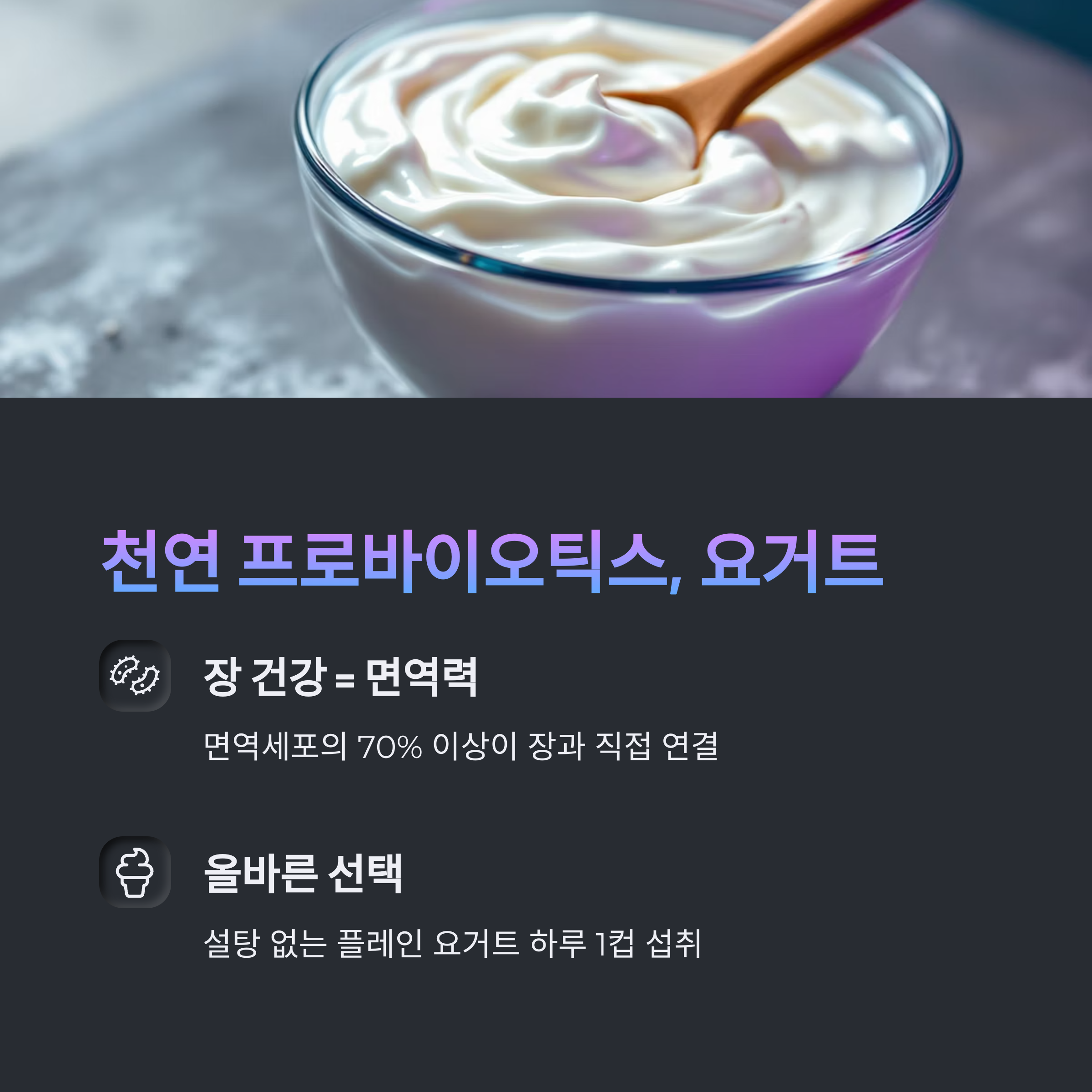 요거트는 장 건강과 면역력을 동시에 잡을 수 있는 대표 식품입니다