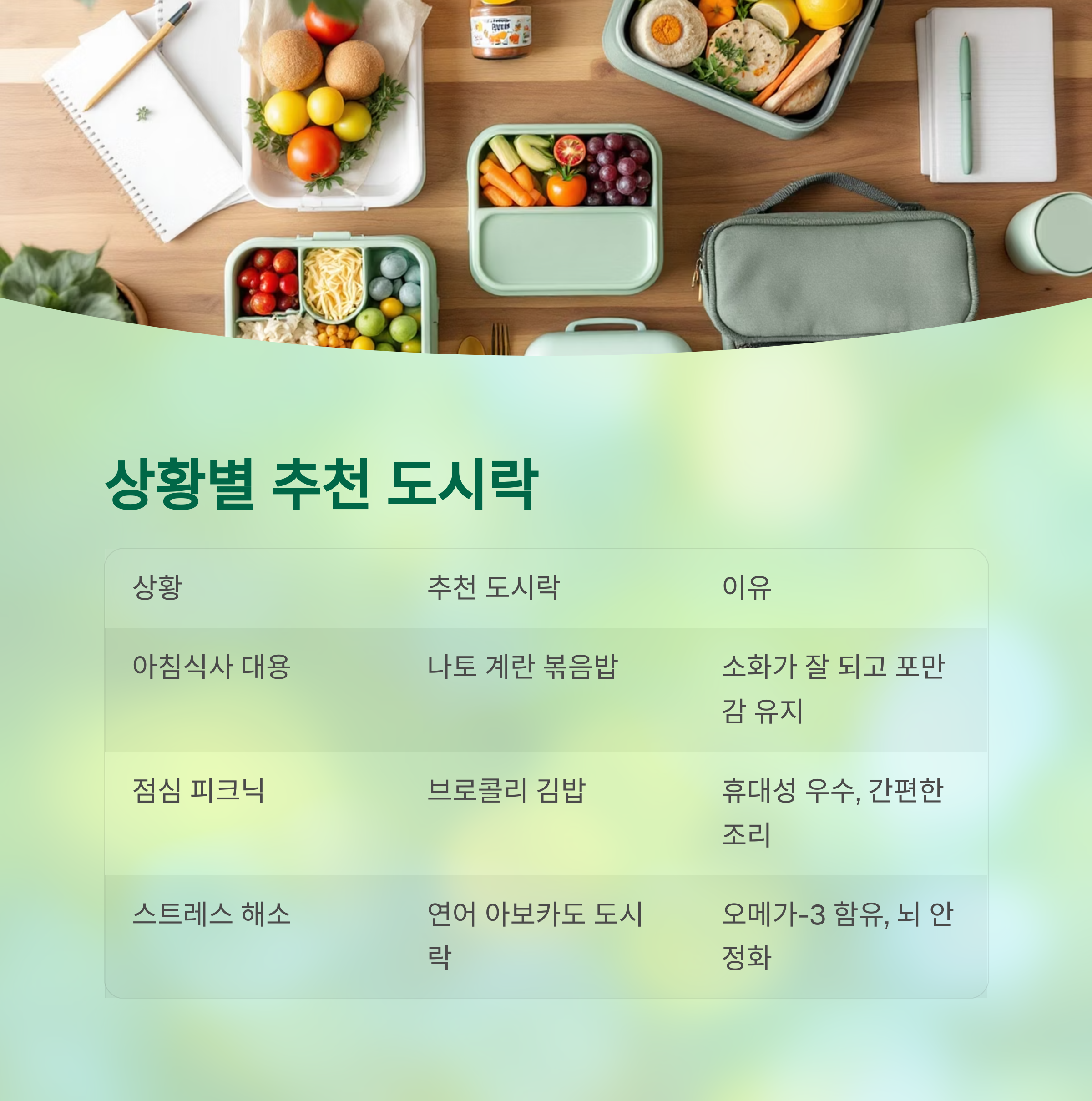 상황별 추천 도시락 구성 예시