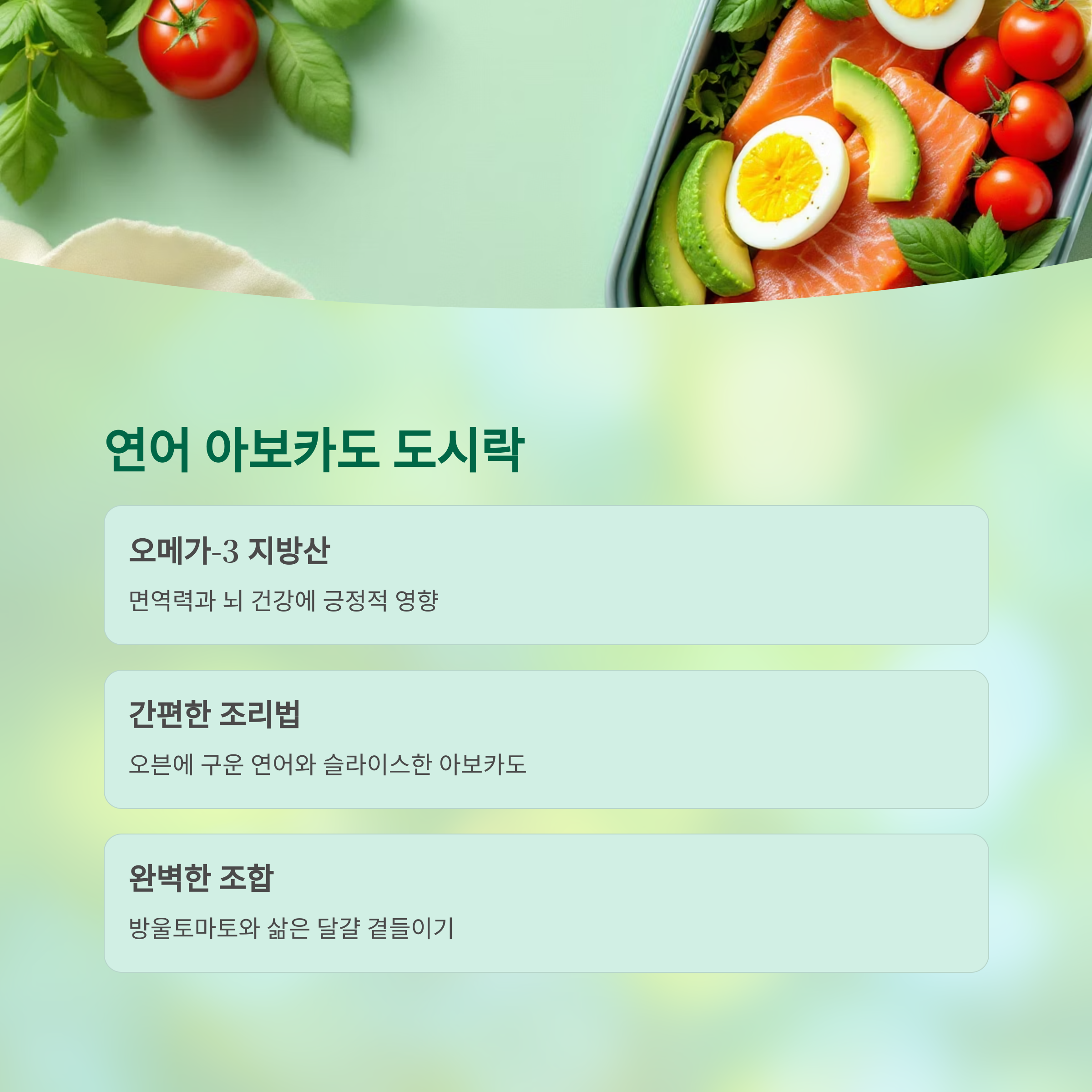 스트레스 해소 연어 아보카도 도시락 오메가-3 함유, 뇌 안정화