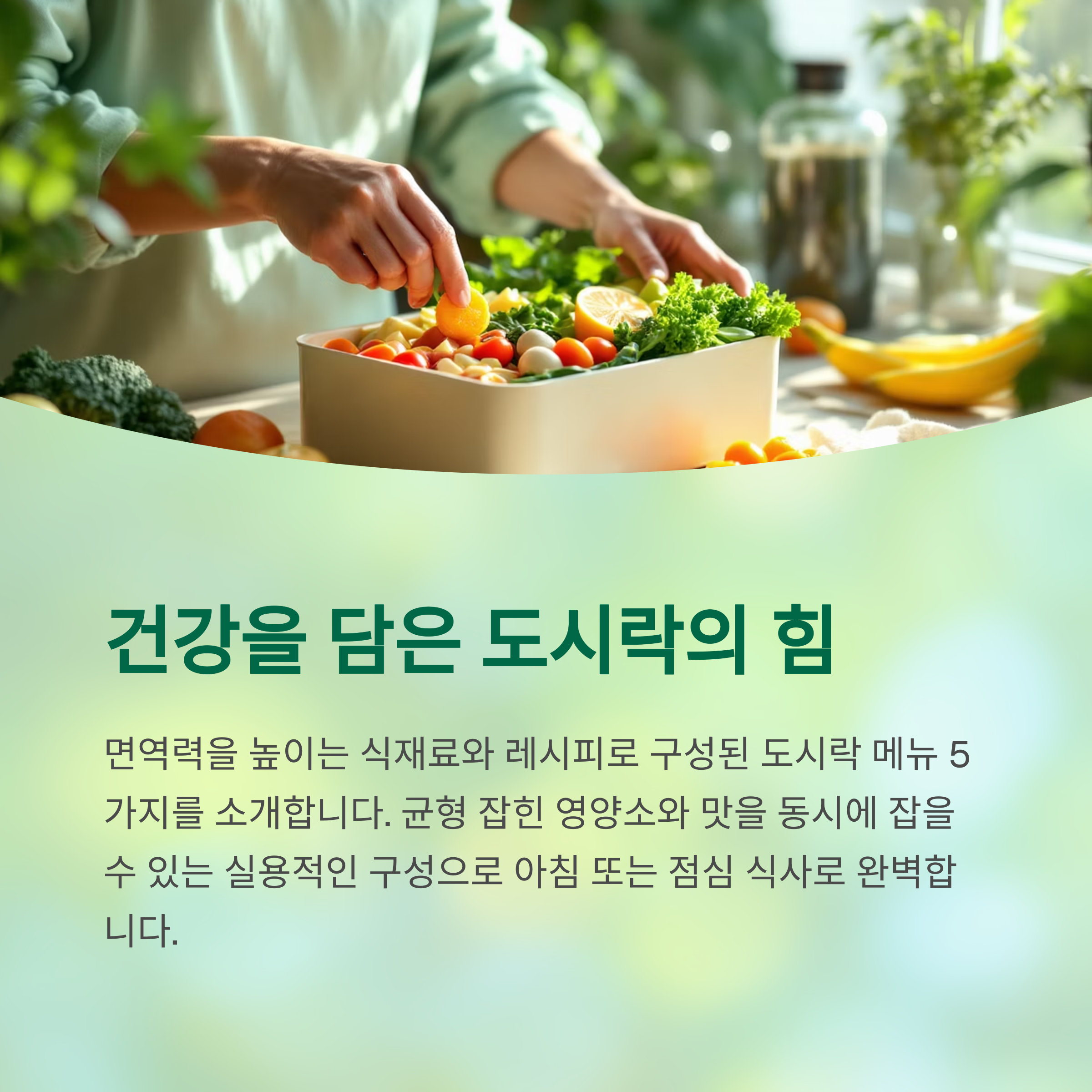 매일 바쁜 일상 속에서도 면역력을 챙길 수 있는 도시락 아이디어를 소개합니다